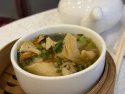 🍚 叉燒飯 (Char Siu Rice)Tender, smoky-sweet slices of char siu laid over fluffy rice—classic comfort with a Cantonese soul. The glaze was rich and caramelized just right, making every bite a savory delight.🥢 鮮竹牛肉 (Beef Wrapped in Bean Curd Skin)Juicy minced beef hugged by silky bean curd skin, steamed to perfection. The umami depth and delicate texture made this a standout—simple yet deeply satisfying.🐮 牛柏葉 (Beef Tripe)A true dim sum gem for the adventurous palate. Braised until tender with a hint of ginger and scallion, the tripe had a lovely chew and soaked up the flavors beautifully.🥬 素餃 (Vegetarian Dumpling)A refreshing break from the meat-heavy lineup—crisp veggies wrapped in translucent skin, bursting with earthy sweetness. Light, clean, and surprisingly addictive.🐔 面水掌翼 (Chicken Wings in Wheat Starch Skin)A rare treat! The wings were juicy and flavorful, encased in a chewy wheat starch wrapper that added a fun texture twist. A playful dish that balanced richness with novelty.…查看更多