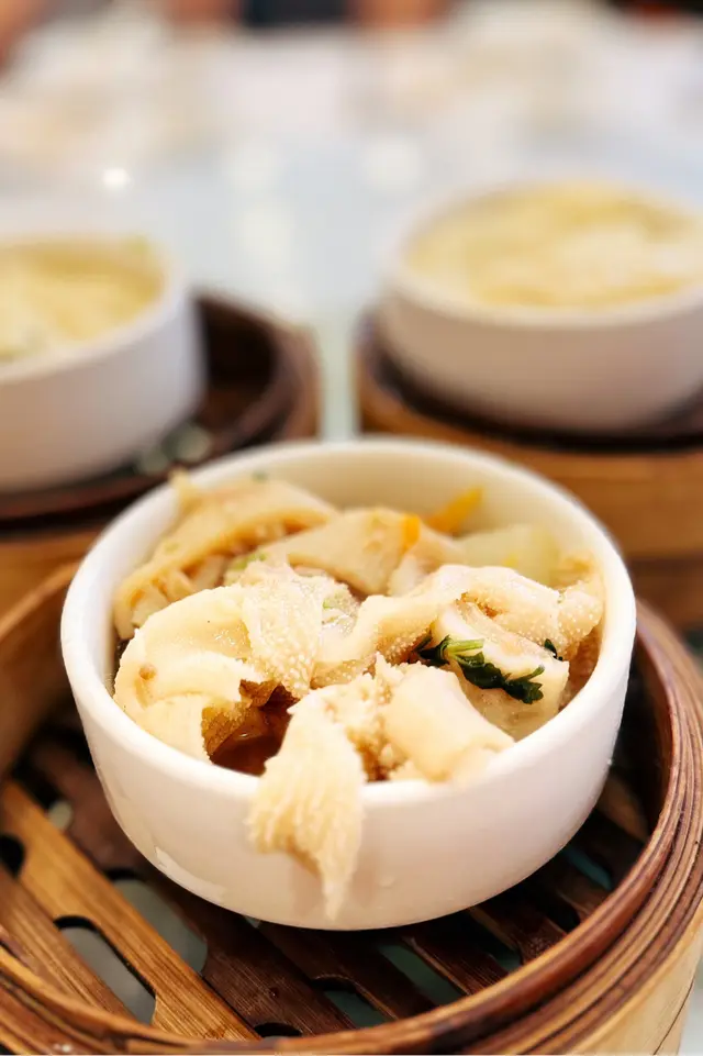 🍚 叉燒飯 (Char Siu Rice)Tender, smoky-sweet slices of char siu laid over fluffy rice—classic comfort with a Cantonese soul. The glaze was rich and caramelized just right, making every bite a savory delight.🥢 鮮竹牛肉 (Beef Wrapped in Bean Curd Skin)Juicy minced beef hugged by silky bean curd skin, steamed to perfection. The umami depth and delicate texture made this a standout—simple yet deeply satisfying.🐮 牛柏葉 (Beef Tripe)A true dim sum gem for the adventurous palate. Braised until tender with a hint of ginger and scallion, the tripe had a lovely chew and soaked up the flavors beautifully.🥬 素餃 (Vegetarian Dumpling)A refreshing break from the meat-heavy lineup—crisp veggies wrapped in translucent skin, bursting with earthy sweetness. Light, clean, and surprisingly addictive.🐔 面水掌翼 (Chicken Wings in Wheat Starch Skin)A rare treat! The wings were juicy and flavorful, encased in a chewy wheat starch wrapper that added a fun texture twist. A playful dish that balanced richness with novelty.…查看更多