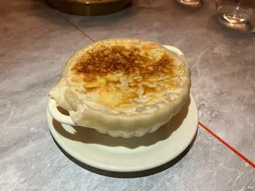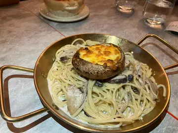 芝士焗大網菇黑松露意粉呢個意粉大家都幾鐘意,芝士味夠香但唔會太膩,加埋黑松露幾有層次,大網菇啖啖爽口,份量都唔少。蜂味串串鱔鱔串燒得幾好,外面脆脆地,肉仲保持濕潤,蜂蜜味唔算好重,係淡淡地帶啲甜,唔會搶咗鱔嘅香濃。西班牙脆皮乳豬大家第一時間就聽到切開個皮嗰吓「咔」聲,真係幾脆。豬肉本身滑同香,唔會太肥膩,鹹香夠味又唔會太漏,切幾件大家分一分,每人食少少幾過癮。酥皮龍蝦湯個酥皮香脆,唔會太厚,撕一舊落湯度一齊食好正。龍蝦湯好濃味,唔會死鹹,底度仲有啲海鮮,飲完暖笠笠好舒服。