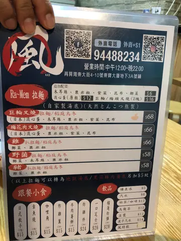風 (筲箕灣) 網址: https://s.openrice.com/QrbS0AQ8A00 地址: 香港筲箕灣筲箕灣東大街4-10號東寶大廈地下3A號舖 電話: +852 62274014