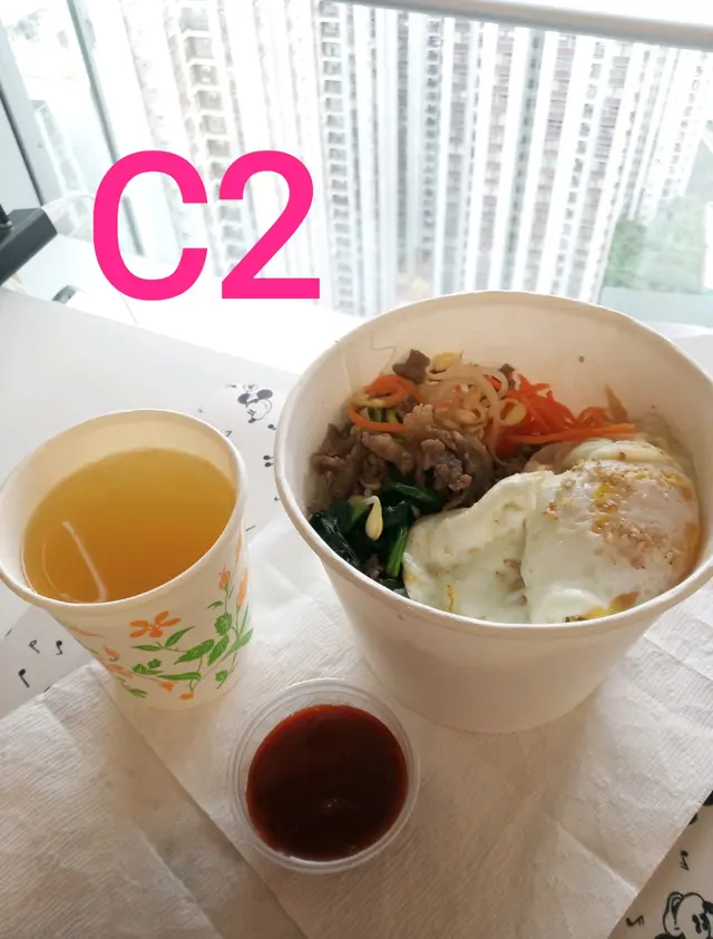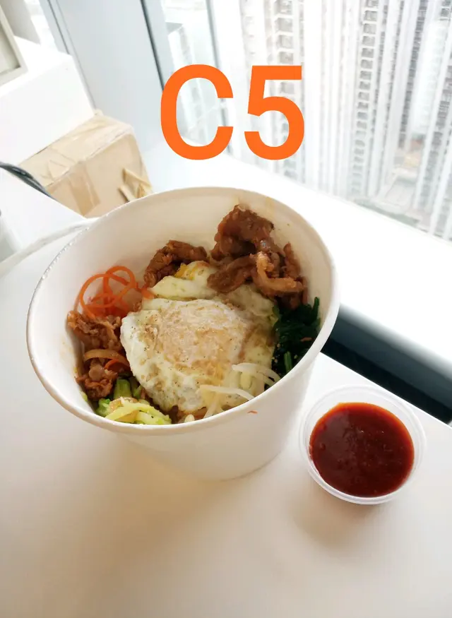 C2 牛肉拌飯 The Bulgogi (Beef) Bibimbap (mixed rice)($50) Add fried egg($3) with Spicy and sweet red sauce,