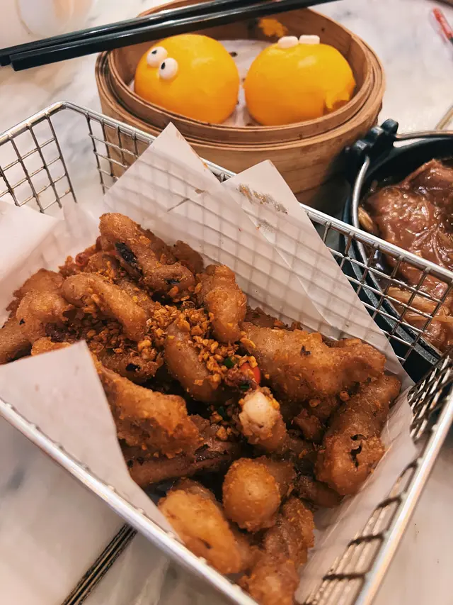 有朋自遠方來💖我帶左佢去中上環食好過癮嘅點心😇去到發現都幾多外國人遊客,證明我無揀錯啦😎睇住流奶呢度必食嘅就係呢個奶皇包☺️造型非常可愛,拮佢個嘴仔仲可以嘔奶!麵包好鬆軟,奶黃味道非常香濃!櫻花蝦燒賣大大粒嘅燒賣,裏面包住豬肉同蝦,口感爽彈!燒賣表面仲鋪滿惹味、鹹香嘅櫻花蝦😋千島明蝦角呢隻炸蝦角表面炸到酥脆,裏面讓咗好多蝦仁!點埋千島醬一齊食,鮮味十足🤩雞絲拉皮充滿麻醬嘅雞絲粉皮,裏邊仲有好多青瓜絲!粉皮Q彈、青瓜絲清爽,味道好開胃❤️香烤蜜餞豚肉叉燒呢例叉燒比我想像中份量多!叉燒部位肥瘦適中,瘦嘅部位食落都唔會黐牙!仲有輕微嘅窿邊,每一件叉燒都沾滿叉燒醬同蜜糖🍯四川擔擔湯麵麻醬愛好者必食,麻醬味道香濃🤤仲有好多花生碎,而且麵條唔會煮到過腍🥰初嚐禁果(蘋果酥)呢客甜品造型得意,係煙靭嘅煎堆裏面包住滿滿玉桂味嘅蘋果餡!上面拮住百力滋,我超鍾意食呢個甜品呀!…查看更多
