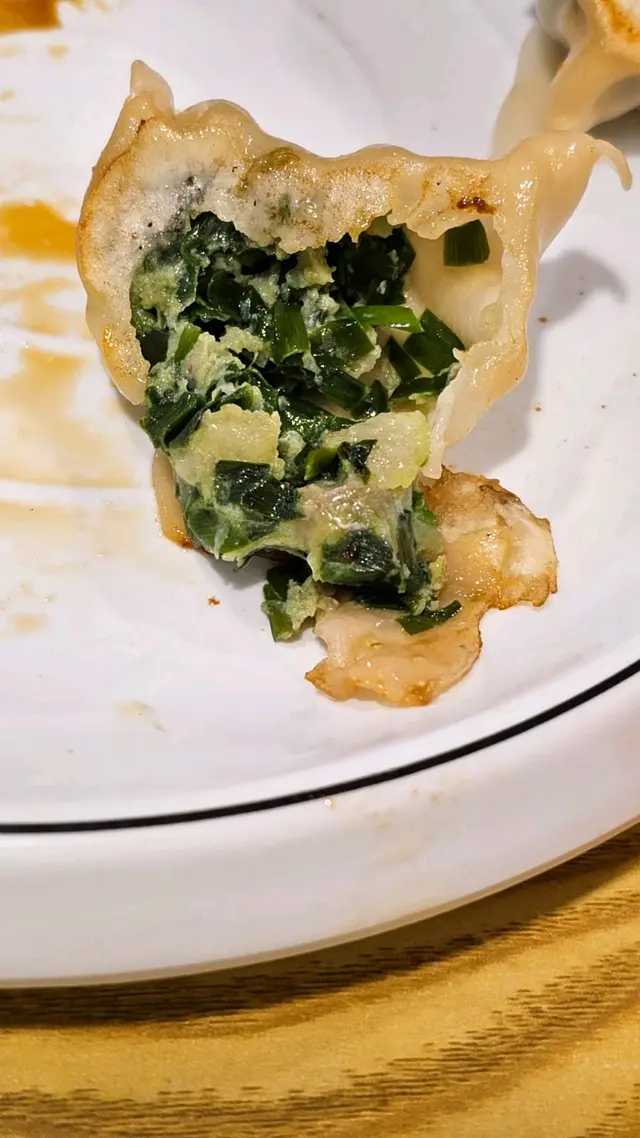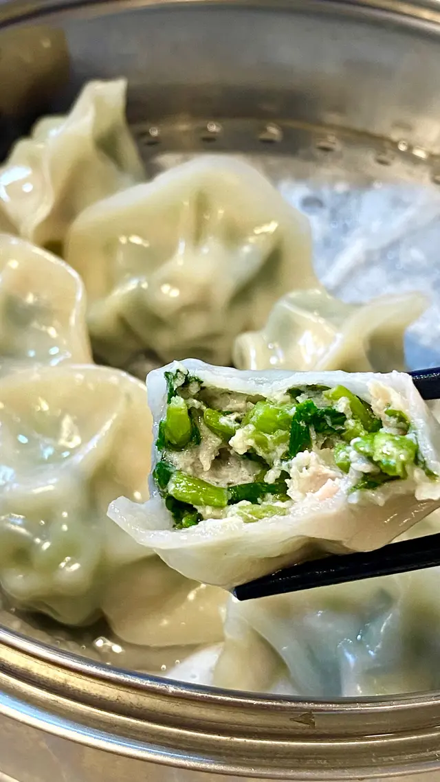 同朋友行完 「元荃古道⛰️」,佢帶我嚟呢間手工餃子小店食晚餐,餃子都有多款口味選擇,而且可隨客人喜好選擇以湯、蒸或煎烹調方式。我點咗:🥟豬肉西洋菜$58🌶️小食:韓式泡菜,蒜香雞中翼🥛飲品:豆漿(熱)我選咗用蒸嘅烹調方法,熱辣辣以成個蒸籠盛上,夠晒原汁原味,一客有10隻餃子,西洋菜當造,清甜鮮味。微辣嘅韓式泡菜及蒜香雞中翼都幾惹味。店員說,飲品都係自家製的。杯豆漿都好有豆香味。朋友就選咗:🌿豬肉芫茜$58🌶️小食:韓式泡菜,蒜香雞中翼🥥飲品:生椰奶茶(凍)朋友就選咗清甜嘅三鮮蕃茄湯底,芫茜份量適中與豬肉既甜味互相配合,鮮甜中有著淡淡嘅芫茜清香。植物奶越嚟越流行,小店亦把自家製嘅奶茶以椰奶沖調,香滑中帶點椰香~🥥最後,我想試埋煎餃,再點一客「豬肉韭菜餃$50」一齊share,皮薄,而且餡料亦飽滿,外皮煎得都幾靚仔,幾香口,一咬落去肉汁滿滿。查看更多