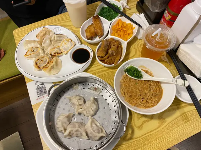 希望店家可以更用心去經營,晚飯時段陸續有人流但未到爆場,套餐價格都比較平民,算係唔錯~ 而食物方面真係要再落下功夫。- 叫左2個全日餐, overall 就以下啦煎餃: 羊肉大蔥 x5 (+$10),蝦滑椰菜魚籽煎餃 x5蒸餃: 牛肉芫茜 x5芝麻拌麵小食: 中華沙律,蒜香雞翼,香脆蘿蔔乾,酸辣鳳爪飲品: 豆漿,桂花烏龍茶 (本身2杯都豆漿, 但真係唔好飲, 另一杯換左茶)- 首先,豆漿真係唔好飲,淡味而杰身,搞下杯野好快又打回原形,比朋友試左啖都表示認同就即刻換左茶,茶都唔錯,桂花味好出~然後餃子方面,煎餃黎唔齊,要問先知原來廚房趺左隻會後上比我...如果可以上菜個時話我知,唔洗我問會更好,之後店家亦後補比左2隻我,有誠意既!- 煎餃似蒸熟左先再煎下個底,唔香唔脆,只係好似做樣上色咁。蒸餃就熟既,每隻都好似開盲盒咁,隻隻都唔同就係無牛肉芫茜,反而出現左係煎餃度。餡就基本好似差唔多味咁,我地每人第一粒都係成粒啪,食左好耐都係憑洋蔥大蔥黑椒去估食緊咩,之後每隻都要咬開一半望下先知係咩餡...不論蒸定煎,都係皮餡分離,個皮好乾硬身,幸好仲有啲肉汁~小食正常,但唔建議叫雞翼。拌麵我無試到就唔作評論喇。-呢個價錢有咁既份量,抵食既~ 但連同質素去睇,會有更好既選擇。查看更多