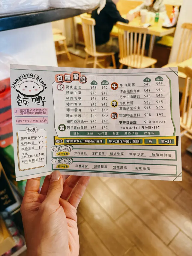 齋睇餐牌,餃子款式正常,但水餃皮好厚,湯水餃又煮唔熟,嘢食一放上枱,未熟嘅面粉皮清晰可見,隻隻都煮到穿左未食已漏汗,但啲皮都係未熟嘅,基本上唔會再試。但地方尚算乾淨。查看更多