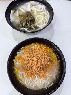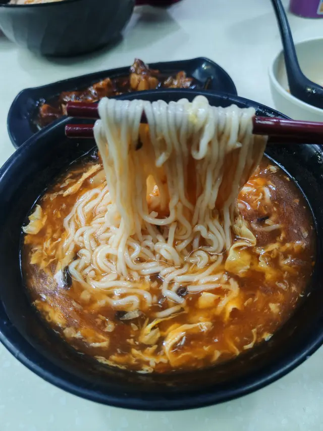 街坊小店雖然鋪面有啲細,但坐得幾舒服,有卡位。侍應非熱情有禮,令人有返屋企食飯嘅感覺。天氣有啲凍,我地都叫咗酸辣湯麵暖下身:一個酸辣湯餃子幼麵,一個酸辣湯糖醋排骨幼麵。講返個酸辣湯,整體算係合格,略為偏酸,唔算太辣,而且都算足料。不過個幼麵真係最大敗筆,完全冇上海麵應有嘅煙韌口感,食落去好似一pat漿糊咁,真心失望😔。朋友嘅餃子皮太厚,食一隻已經覺得好飽,影響咗成碗麵嘅體驗。至於糖醋排骨,味道相對好啲,雖然食得出排骨本身唔算非常新鮮,但煮得都算入味,算係可以收貨。
