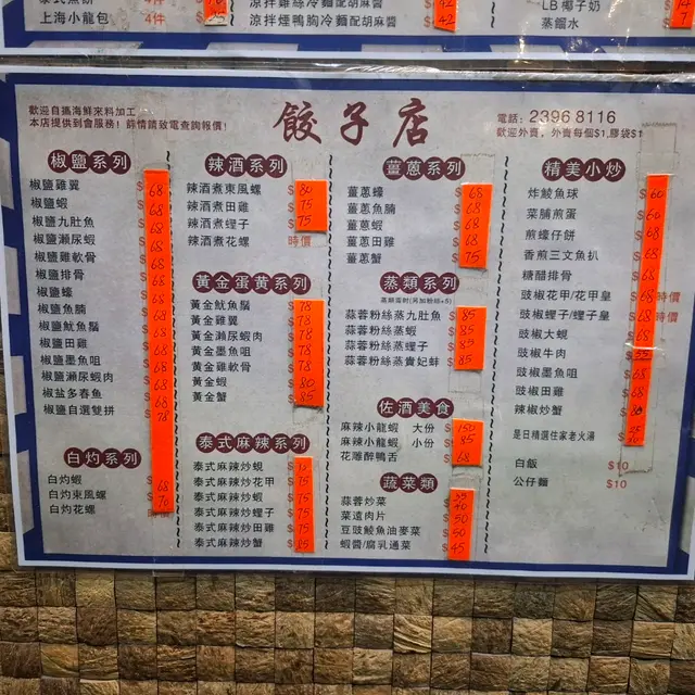 餃子店 (大角咀) 網址: https://s.openrice.com/QrbS06ly4W0 地址: 香港大角咀大角咀道157號中美樓地舖 電話: +852 23968116