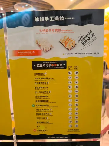 淘大商場嘅「餃子爺爺✨」令人食過返尋味,絕對係真材實料餃子店,佢哋有不同口味及款式嘅餃子,隻隻都皮薄餡料飽滿,抵食又好味餃子🥟可點湯餃或煎餃,煎餃外皮煎得香脆,裏面充滿肉汁,係我至愛之選。芝士玉米鮮肉餃及京蔥牛肉餃係我每次必食之選。除咗招牌餃子之外,有不同款式嘅麵食及飯類,湯拉麵或拌麵🍜都非常美味,四川擔擔麵、石斑魚柳鮮魚湯拉麵都極力推介。另外仲有手工小食,皮蛋豆腐、雞絲粉皮、蒜泥白肉,款款都咁吸引。佢哋嘅下午茶餐超級抵食,有餃子下午茶餐或者精選麵食下午茶餐,只係$48起,已經包括麵或餃子,小食及飲品,性價比十分高,絕對係我既糧尾之選😂