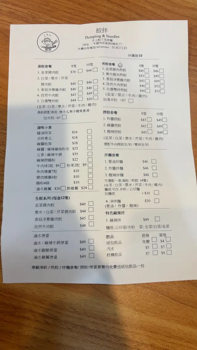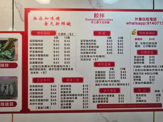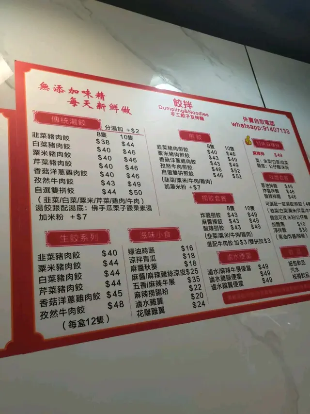 餃拌 (牛頭角) 網址: https://s.openrice.com/QrbS0S3SF00 地址: 香港牛頭角定富街4-24號七喜大廈地下10號舖 電話: +852 91407133