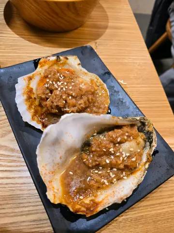 雲耳椰菜豬肉餃 - $38/ 6 PCS正常發揮成粒餃漲卜卜咁好足料有啲菜係度都感覺健康翡翠墨魚餃 - $48/ 6 PCS見到個皮綠綠地色幾特別所以叫咗嚟試整體口感都幾彈牙同鮮甜好鍾意個湯底椰子味好香好清甜飲完都唔會話好口乾蝦多士 - $32/ 2PCS蝦膠都幾彈牙多士好脆但口感略嫌有啲油焦糖香蕉 - $18唔知係遲咗食定係個焦糖燒得唔夠脆咬開無乜脆脆嘅感覺香蕉都好似無燒過咁有少少硬明太子雞翼 - $48/ 2隻叫咗小辣都幾惹味咬開雞翼仲好嫩滑多汁-燒豬頸肉 - $18好Juicy同埋好彈牙-燒牛舌芯 - $32牛舌比想像中薄同埋有少少乾燒茄子 - $36茄子燒得好淋好入味呢個燒茄子又唔算太油都幾好蒜蓉扇貝 - $56/ 2PCS唔算十分大隻不過好鮮甜扇貝肉質都幾結實加埋蒜茸更加香口龍眼冬瓜茶 - $28-冷泡白桃烏龍 - $15飲品就正常發揮