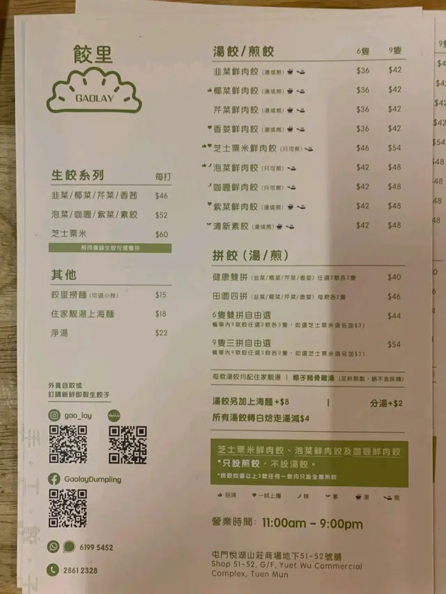 餃里 (悅湖商場) (屯門) 網址: https://s.openrice.com/QrbS0Wv8A00 地址: 香港屯門湖秀街2號悅湖商場地下51-52號舖 電話: +852 28612328