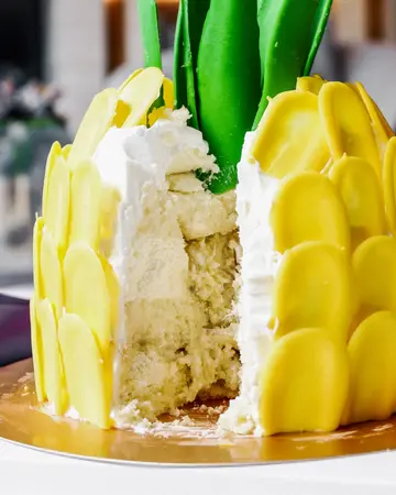 柑橘柚子慕絲蛋糕 $58濕潤的慕絲,柚子的果酸味濃,白色那層微甜,下層是薄薄又濕潤一層的海綿蛋糕!