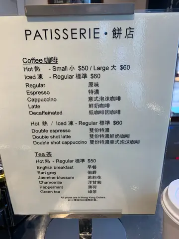 Menu飲品分兩種 size!供應:麵包、甜品、蛋糕、咖啡、茶...