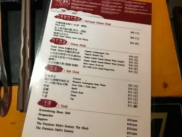 餐廳提供多款特色湯頭,推薦寧神養心鍋,含有多種中藥材、鮮雞、豬肉及鮮魚,建議下配料前先喝湯,品嚐湯的鮮甜原味。