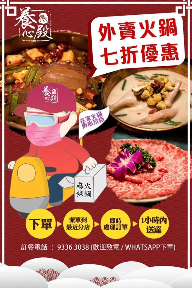 養心殿台式養生鍋 (旺角) 網址: https://s.openrice.com/QrbS000S800 地址: 香港旺角彌敦道607號新興大廈1樓106-112號舖 電話: +852 23233123