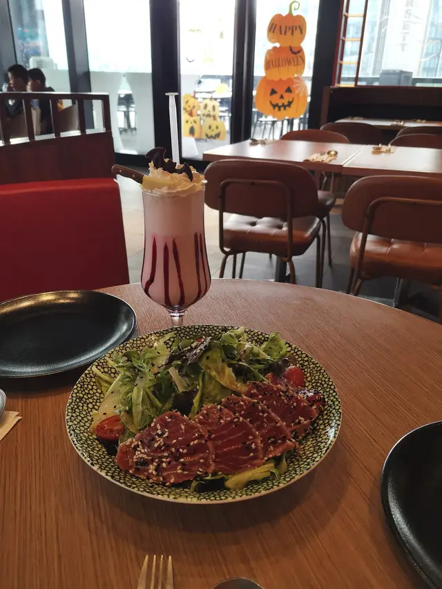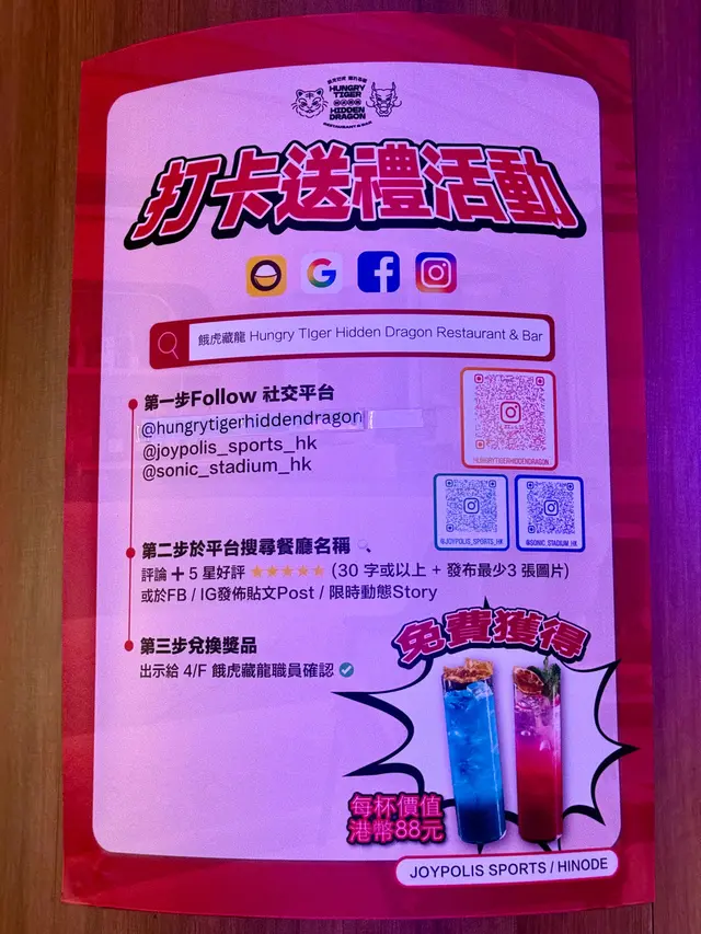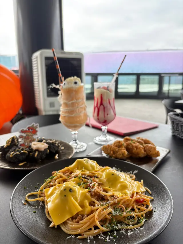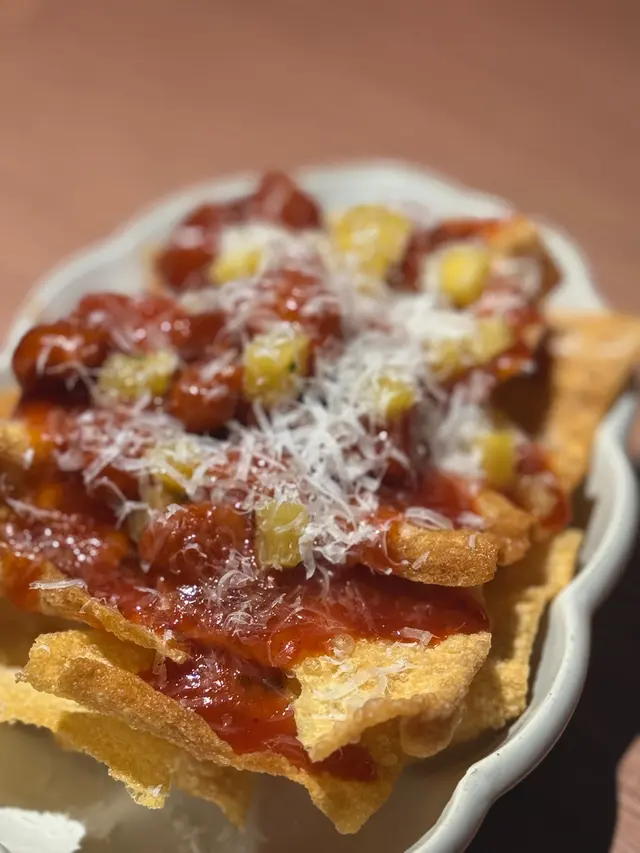 Not only does their kitchen whip up original Asian-Western fusion dishes crafted by a Michelin-starred team, but their bar offers quirky cocktails powered by a mixology team from 'Asia's 50 Best Bars'. But don’t worry about breaking the bank though, as your Joypolis wristband gets you 12% off the main menu 😉 (btw you don’t need a ticket to dine here)They also have a pet-friendly outdoor terrace with panoramic stadium views, plus you can even enjoy live music (from 8pm) or post-concert after parties if you’re lucky!𝗖𝗿𝗶𝘀𝗽𝘆 𝗦𝘄𝗲𝗲𝘁 𝗮𝗻𝗱 𝗦𝗼𝘂𝗿 𝗣𝗼𝗿𝗸 𝗡𝗮𝗰𝗵𝗼𝘀 𝗛𝗞𝗗𝟳𝟴Must-order! This was a brilliant elevated twist of my all-time fave classic, and they CRUSHED it with crispy fried dumpling skin 'nachos' and fine-diced pineapple 𝗦𝘁𝗶𝗿-𝗳𝗿𝗶𝗲𝗱 𝗥𝗶𝗰𝗲 𝗥𝗼𝗹𝗹 𝘄𝗶𝘁𝗵 𝗠𝗮𝗽𝗼 𝗧𝗼𝗳𝘂 𝗮𝗻𝗱 𝗖𝗿𝗮𝗯 𝗠𝗲𝗮𝘁 𝗛𝗞𝗗𝟭𝟮𝟴Never had something like this! The chewy yet perfectly crunchy rice rolls (tteokbokki vibes!) were drizzled with a rich, flavourful mapo tofu sauce that had just the right kick to make us happily sweat 𝗖𝗵𝗶𝗰𝗸𝗲𝗻 𝗦𝗮𝗹𝗮𝗱 𝘄𝗶𝘁𝗵 𝗔𝘃𝗼𝗰𝗮𝗱𝗼 𝗮𝗻𝗱 𝗘𝗴𝗴𝘀 𝗛𝗞𝗗𝟭𝟭𝟴The portion was HUGE! Loaded with creamy avocado and tender pulled chicken, the tangy dressing was balanced and coated every single bite𝗦𝗻𝗼𝘄 𝗖𝗿𝗮𝗯 𝗠𝗲𝗻𝘁𝗮𝗶𝗸𝗼 𝗨𝗱𝗼𝗻 𝗛𝗞𝗗𝟭𝟮𝟴The super chewy udon noodles were drenched in an ultra-creamy sauce, generously topped with sweet snow crab and umami-packed mentaiko. Pure comfort in a bowl that left us happily stuffed𝗬𝘂𝗺 𝗖𝗵𝗮 𝗦𝗼𝗺𝗲𝘁𝗶𝗺𝗲 𝗛𝗞𝗗𝟭𝟬𝟴We had to order this for the gram! The sweet coconut water and pandan syrup mellowed the unique toasty notes of genmai vodka while the fragrant jasmine tea added a delightful floral finish𝗦𝗺𝗼𝗸𝘆 𝗣𝗮𝗹𝗼𝗺𝗮 𝗛𝗞𝗗𝟭𝟬𝟴For something zesty and refreshing, this is your drink. Beneath the creamy top artfully garnished with cucumber and grapefruit, the base was bursting with vibrant lime and classic tequila notes…查看更多