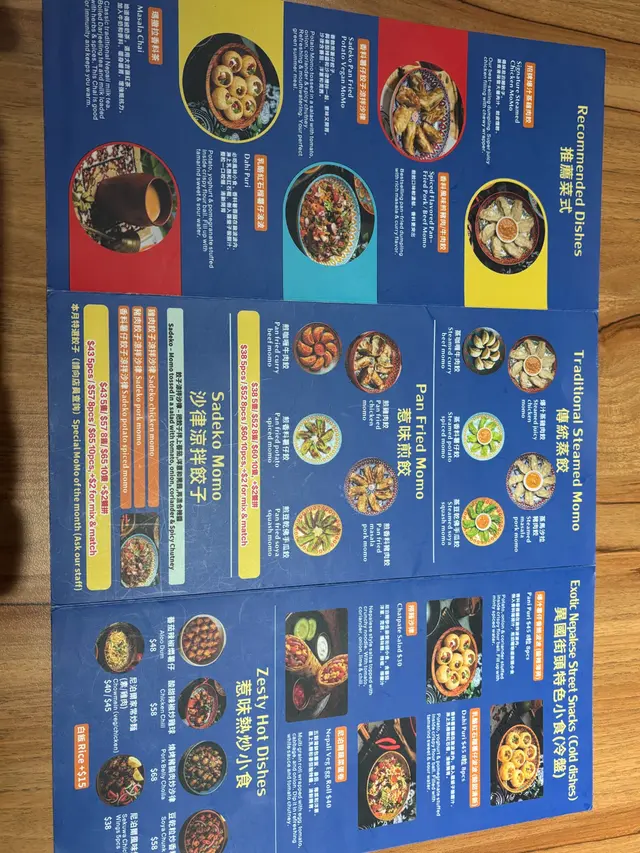 朋友話帶我嚟西環食特色餃子。 鋪位於巷內,唔係朋友帶我要找一輪先嚟到。 尼泊爾文餃子就叫做momo。 佢哋嘅餃子多數會混入香草同埋洋蔥。 所以味道比較濃郁,店內佈置色彩繽紛,手織藤傢俬,尼泊爾旗, 喜馬拉雅山圖案。具異國風味。價錢親民,有不少捧場客😊🔸️Dahi Puri 乳酪紅石榴薯仔波波$45必吃風味小吃👍香料薯蓉釀在脆波波內,上層有乳酪及紅石榴,食時倒入羅望子酸甜汁,一整粒入口清新開胃🤤🔸️招牌爆汁蒸雞肉餃$38 ~ 傳統尼泊爾餃子,餃皮比平時食開嘅厚少少煙韌少少。餡肉嫩滑有肉汁😋 沾上風味花生醬似食沙嗲串燒個醬汁味,蕃茄香辣醬帶微辣,辣得幾過癮🤤各有各好味😋🔸️煎咖喱牛肉餃$38~ 咖喱牛肉洋蔥包的餃子,煎香後香濃惹味,略嫌有點油膩。🔸️尼泊爾香料雞翼$35 ~ 外脆內軟,食得出有先醃再烤,濃味香料帶辣味,配上檸檬汁食非常惹味😋🔸️尼泊爾蔬菜蛋卷$40 ~ 用薄餅包雞蛋蕃茄椰菜,生洋蔥,捲起來,沾上乳酪,蕃茄酸辣醬少少辣,感覺辣清新開胃。🔸️黃金牛奶$30 ~ 黃金牛奶嘅抗炎抗氧好處好多😍見到即刻叫嚟試吓,以薑黃肉桂豆蔻加入牛奶煮暖,比例很好飲落去感覺好舒服😊🔸️尼泊爾高山紅茶$30 ~ 用喜馬拉雅高山紅茶沖泡,顏色濃郁,入口清雅。🔸️印度牛奶雪糕 Kulfi $40 ~與平時食嘅雪糕質感有點不同,中間帶沙冰感,但無沙冰咁涷都幾得意, 帶有淡淡的香滑牛奶香,雪糕配埋開心果及脆脆超級好味🤩大讚最貼心有洗手位給人洗手,潔手很衛生👍…查看更多