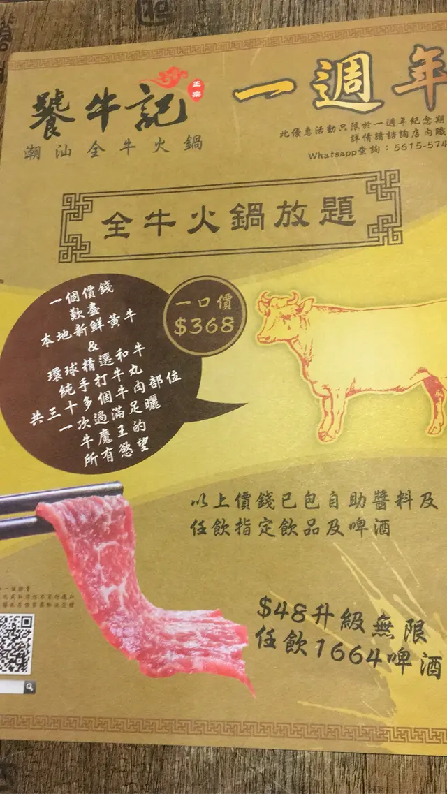 一入到餐廳招牌寫住「新鮮才是王道」,所有食品都係落單後即切,務求保持食物新鮮!開張一週年推出左牛魔王任食放題當然要試一試,一次可以食哂牛所有部位!兩個人食佢比左一份牛雜盤同埋小牛木盤,有部份可以任食嘅!鐘意食牛嘅朋友一定要黎試下!小牛木盤🐂.包含左牛嘅12個部位,牛舌,吊龍,牛丸,黃喉等等,每部份質感同味道都唔同,個人最喜歡嘅係牛丸同牛舌!牛丸係100%手打,爽口彈牙!牛頸脊❤️.呢個部份脂肪分佈平均,而且肉味濃郁,食落唔會覺得肥膩,入口即溶嘅感覺,仲Encore 左兩次Tim☺️雪花牛面肉😛.牛面肉相比牛頸脊厚身,食落更有層次,不過呢個就無任食,如果想任食呢款就要額外加收費!⭐️推薦食品⭐️牛頸脊,雪花牛面肉,牛丸…查看更多