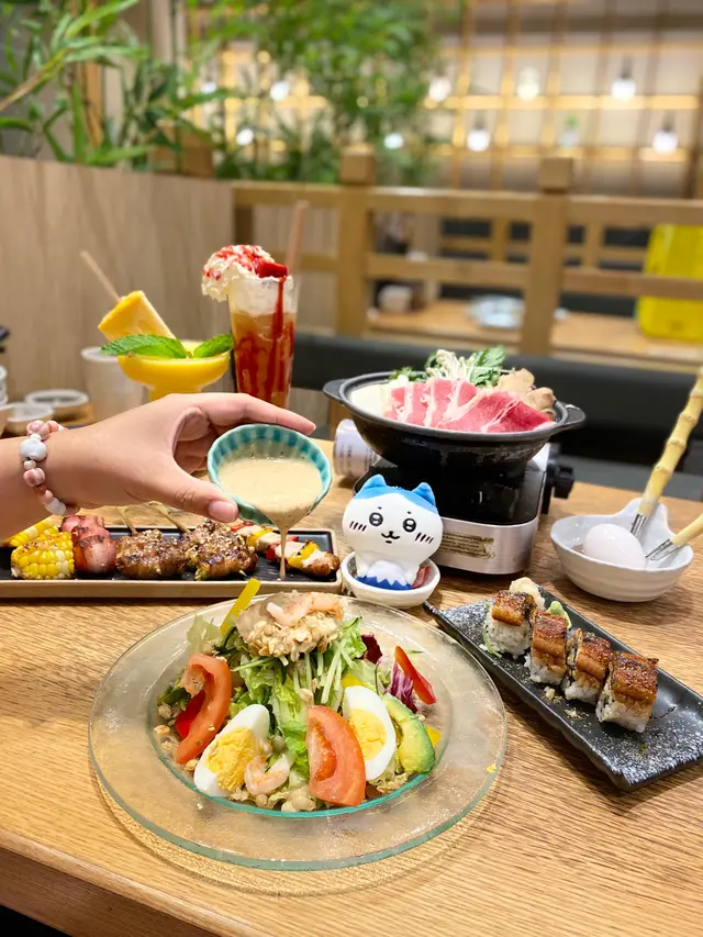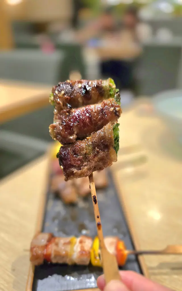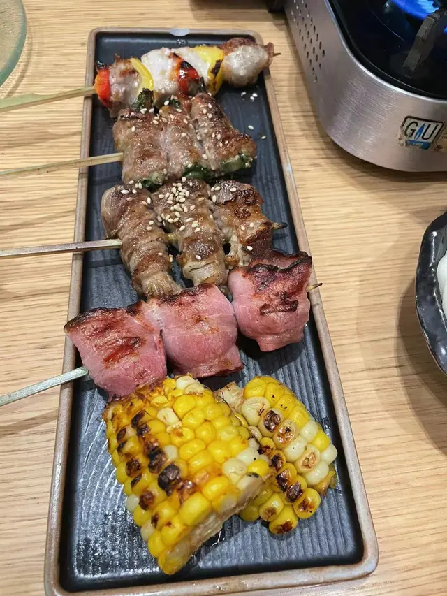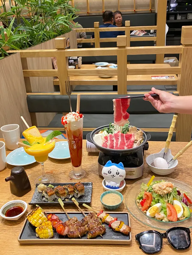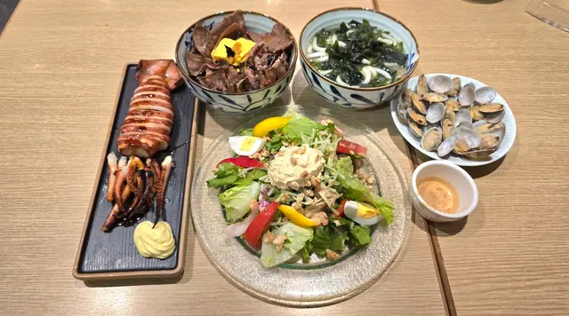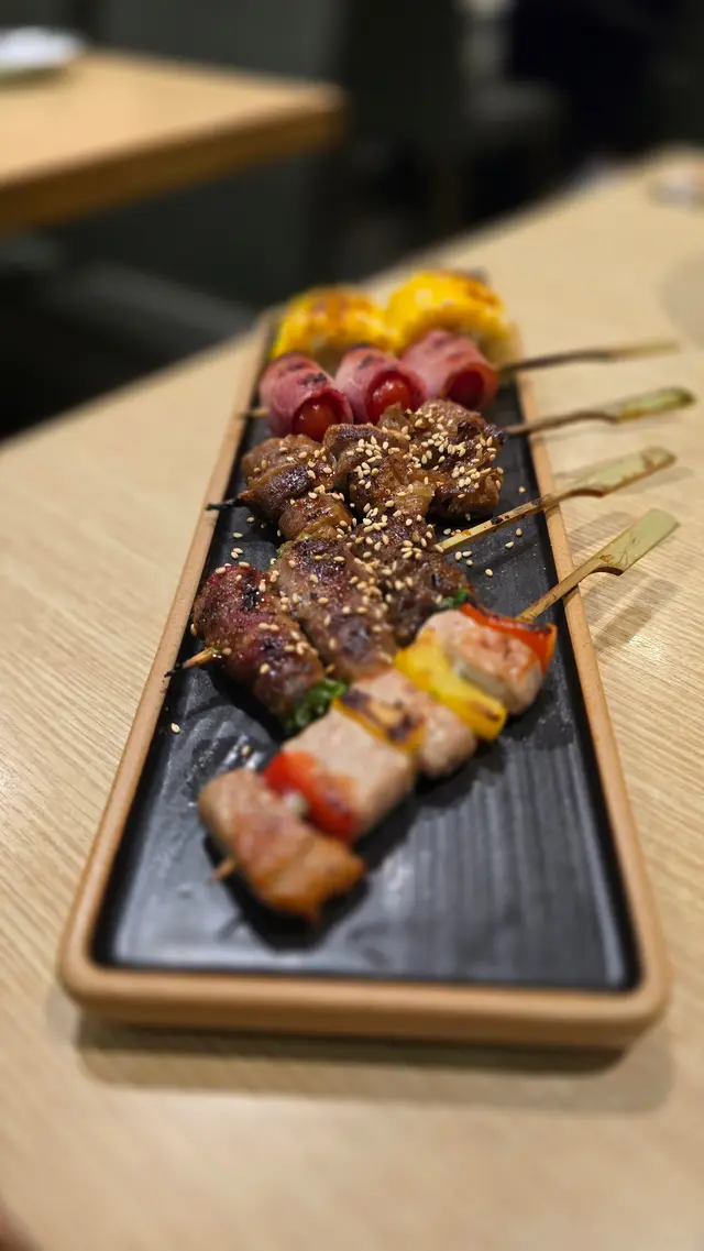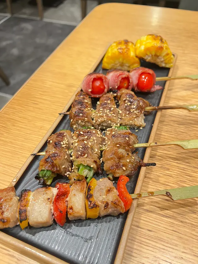 今天晚飯在「饗和民本格串燒.旬鮮料理」吃串燒盛盒和日式料理。串燒盛盒有精緻的配搭:豚肉串~來自北海道產的豚肉串中,夾有菠蘿、紅椒、黄椒,果酸椒甜,味道層次很豐富。青蔥牛肉卷:牛肉味濃而不膩,卷著爽口鮮甜大蔥吃,口感清新。金菇牛肉卷:牛肉片卷金菇,沒有油膩感,又香又滋味。車厘茄煙肉串:煙肉卷車厘茄,口中爆天然茄汁,甜甜酸酸好開胃。粟米燒:燒香粟米,香甜可口。饗和民沙律~七彩繽紛的新鮮蔬果滙集一起,添加鮮蝦、沙律醬與堅果碎,是健康及美味之選。蜆肉讚岐烏冬~很喜歡有這麼多鮮嫩蜆肉來滿足我,烏冬來自讚岐,品質有保証。炙燒牛舌飯~薄薄的牛舌片都很有鮮爽口感,配合特製醬汁,非常滋味。滑蛋豬扒飯~豚肉鬆軟腍滑是優質豬扒之選,加上滑蛋、洋葱絲舖蓋在珍珠米飯上,吃到絲絲清甜香與蛋香,雖然賣相不美,却以美味可口取勝。魷魚燒~肉質鮮爽,醬汁香濃,每次必吃。芒果盛宴~芒果蓉打成沙冰,配上芒果雪條,滿滿的鮮芒果香味,的確是飲品中的「盛宴」。荔枝檸檬沙冰~時令特飲,勁消暑!很滿足的「饗和民盛宴」,下次再來「饗和民盛宴」!…查看更多