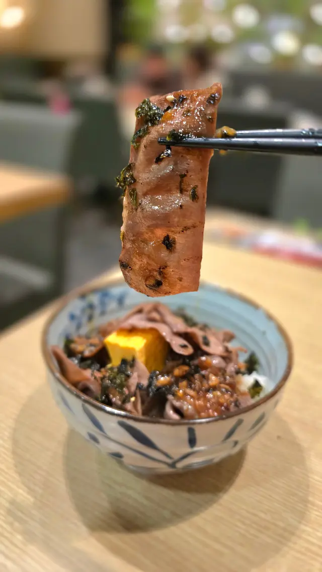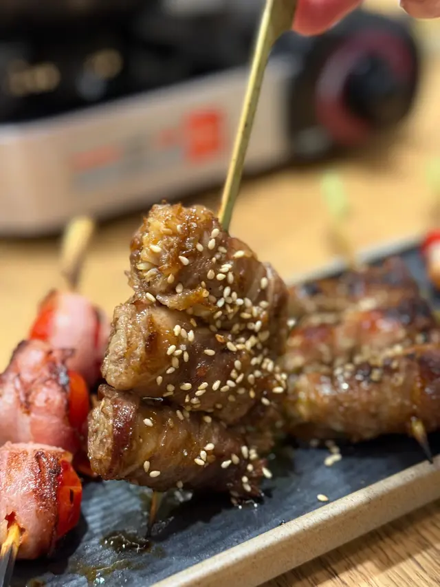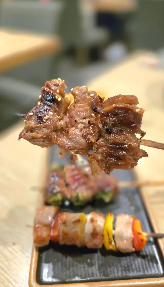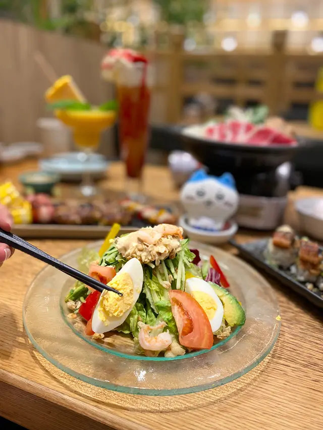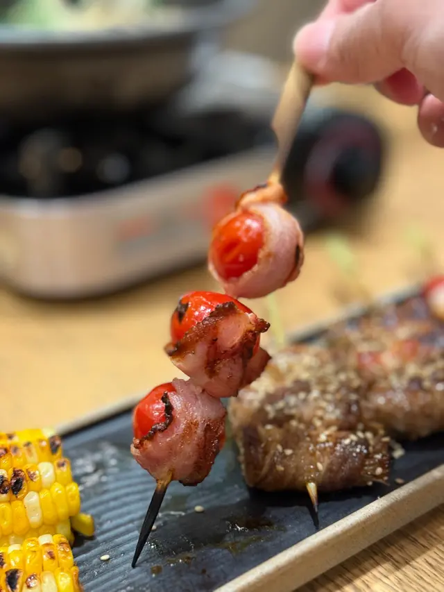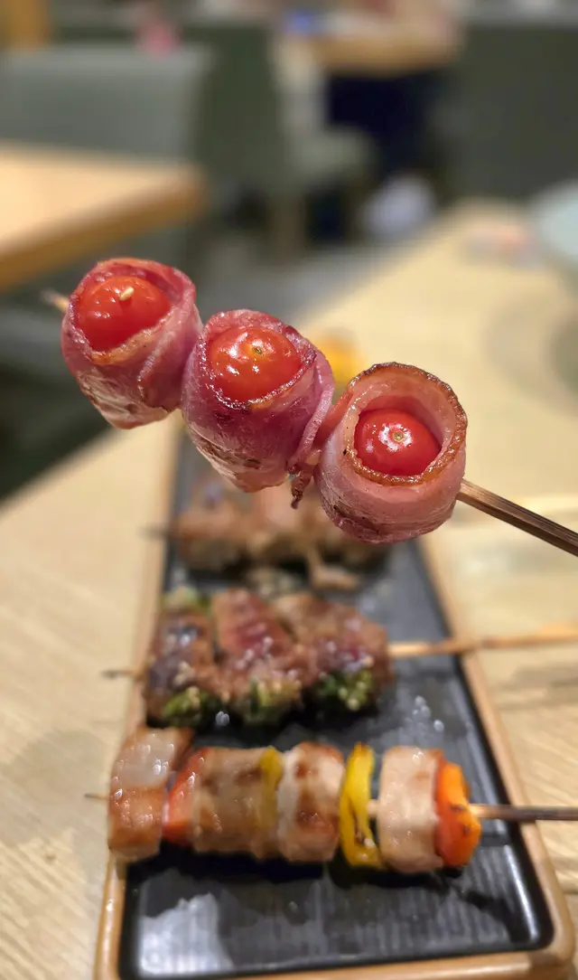 今天晚飯在「饗和民本格串燒.旬鮮料理」吃串燒盛盒和日式料理。串燒盛盒有精緻的配搭:豚肉串~來自北海道產的豚肉串中,夾有菠蘿、紅椒、黄椒,果酸椒甜,味道層次很豐富。青蔥牛肉卷:牛肉味濃而不膩,卷著爽口鮮甜大蔥吃,口感清新。金菇牛肉卷:牛肉片卷金菇,沒有油膩感,又香又滋味。車厘茄煙肉串:煙肉卷車厘茄,口中爆天然茄汁,甜甜酸酸好開胃。粟米燒:燒香粟米,香甜可口。饗和民沙律~七彩繽紛的新鮮蔬果滙集一起,添加鮮蝦、沙律醬與堅果碎,是健康及美味之選。蜆肉讚岐烏冬~很喜歡有這麼多鮮嫩蜆肉來滿足我,烏冬來自讚岐,品質有保証。炙燒牛舌飯~薄薄的牛舌片都很有鮮爽口感,配合特製醬汁,非常滋味。滑蛋豬扒飯~豚肉鬆軟腍滑是優質豬扒之選,加上滑蛋、洋葱絲舖蓋在珍珠米飯上,吃到絲絲清甜香與蛋香,雖然賣相不美,却以美味可口取勝。魷魚燒~肉質鮮爽,醬汁香濃,每次必吃。芒果盛宴~芒果蓉打成沙冰,配上芒果雪條,滿滿的鮮芒果香味,的確是飲品中的「盛宴」。荔枝檸檬沙冰~時令特飲,勁消暑!很滿足的「饗和民盛宴」,下次再來「饗和民盛宴」!…查看更多