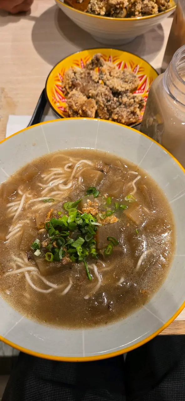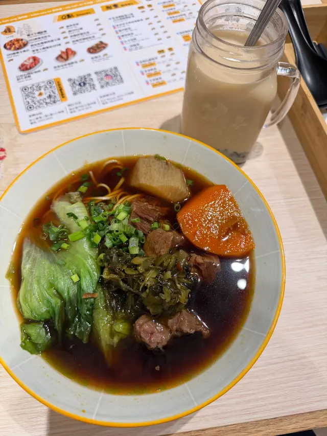 熱茉香奶茶配仙草 (跟餐+$20) ★★★✰✰以台式飲料來説這間舖頭選擇不算多,所有水果茶都沒有熱飲選擇。我選擇的仙草茉香奶茶,仙草與牛肉麵中的牛肉粒一樣都是碎濕濕,即使有飲品羹都不太舀到,茶底都很普通。唯一可取的是飲品杯容量幾大,飲極都飲不完。店內以QR code自行落單,店員私下不斷以普通話聊天,對食客沒有特別responsive或殷勤,所以綜合各細項給個三粒星,整體評分只能給OK。…查看更多