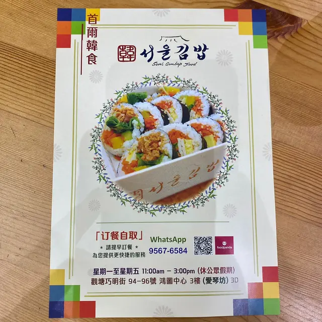 首爾韓食 • 서울김밥 • (觀塘) 網址: https://s.openrice.com/QrbS0si0900 地址: 香港觀塘巧明街94-96號鴻圖中心3樓D號舖 電話: +852 95676584