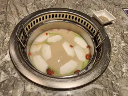 佐敦香江花月係洋溢著50年代風情的火鍋店,懷舊中帶點奢華的裝潢,瞬間將人帶回往日時光。這次品嚐的是「海陸雙饌」套餐,以海鮮冬瓜湯鍋搭配特選黃牛呼拉圈,視覺與味覺都好正!先嚐的是海鮮冬瓜湯鍋,湯底清甜,散發淡淡的海鮮香氣,凸顯出海鮮的清甜,湯頭層次豐富。拼盤中的海鮮樣樣都好新鮮,鮑魚爽彈鮮美,到少食到4隻!大蝦肉緊實,味道又爽同甜美!蟹都有丫!蟹膏豐腴甘香。而龍躉斑片厚實而且滑嫩,仲有好多蜆,蜆肉飽滿又多汁接著是造型吸睛的「特選黃牛呼拉圈」!有不同部位的黃牛整齊排列在圓環木盤上,圍著鍋爐擺放,十分適合打卡!今天仲見到有日本客人光顧打卡!當中薄切牛肉最令人驚艷,牛脂豐富,而且香氣濃郁,入口即化!牛小腿肉質軟嫩,牛黃喉爽脆有嚼勁,牛百葉吸收了海鮮湯中的精華,而且爽口不韌。牛肉一款純肉香濃,另一款帶點雪花牛膏,同樣牛肉味十足,各有風味。店家還提供了豐富的自選醬料區,造型非常漂亮,包括蔥粒、芫荽、生熟蒜蓉、辣椒🌶️芝麻、等多種配料,讓客人能隨心調配出最對味的蘸醬。整餐都享受到視覺與味覺的火鍋體驗。香江花月 (佐敦)❣️佐敦佐敦道31-37號百誠大廈2樓…查看更多