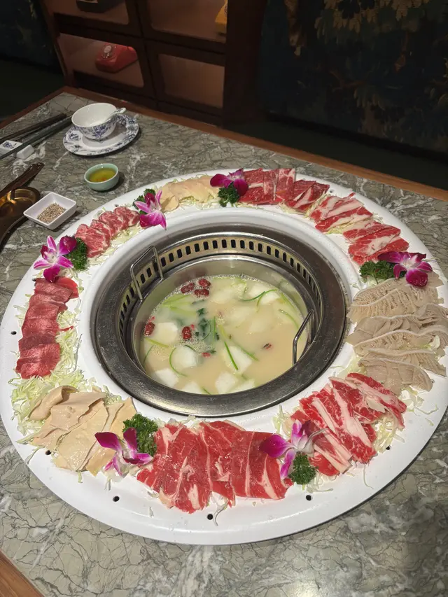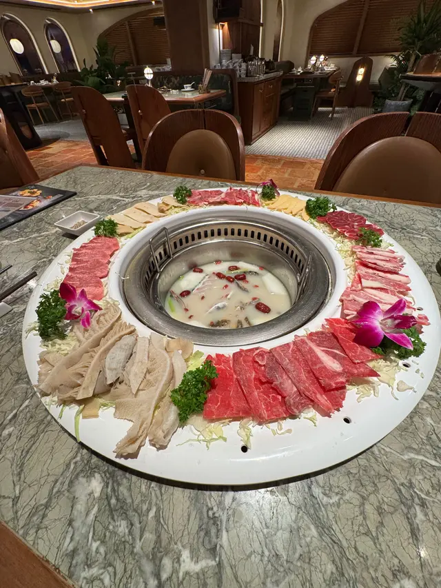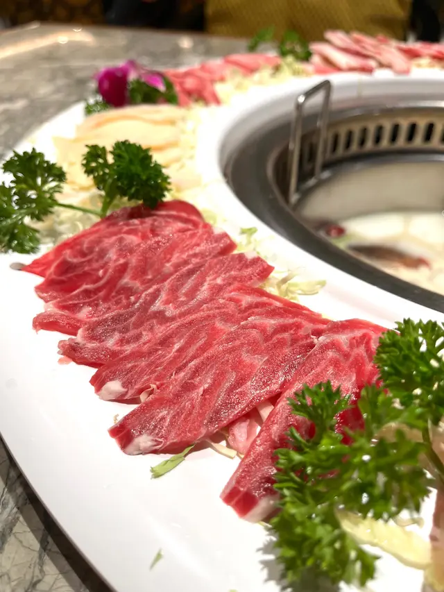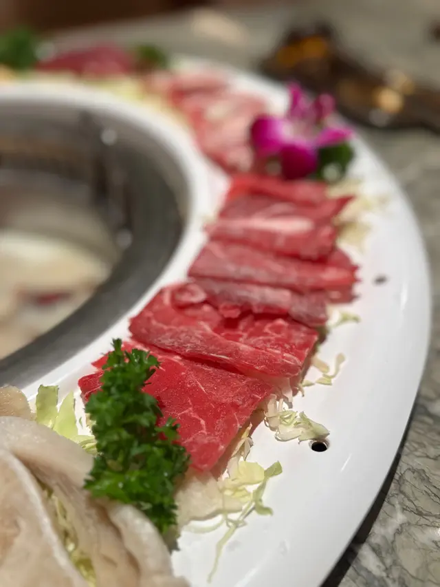 佐敦香江花月係洋溢著50年代風情的火鍋店,懷舊中帶點奢華的裝潢,瞬間將人帶回往日時光。這次品嚐的是「海陸雙饌」套餐,以海鮮冬瓜湯鍋搭配特選黃牛呼拉圈,視覺與味覺都好正!先嚐的是海鮮冬瓜湯鍋,湯底清甜,散發淡淡的海鮮香氣,凸顯出海鮮的清甜,湯頭層次豐富。拼盤中的海鮮樣樣都好新鮮,鮑魚爽彈鮮美,到少食到4隻!大蝦肉緊實,味道又爽同甜美!蟹都有丫!蟹膏豐腴甘香。而龍躉斑片厚實而且滑嫩,仲有好多蜆,蜆肉飽滿又多汁接著是造型吸睛的「特選黃牛呼拉圈」!有不同部位的黃牛整齊排列在圓環木盤上,圍著鍋爐擺放,十分適合打卡!今天仲見到有日本客人光顧打卡!當中薄切牛肉最令人驚艷,牛脂豐富,而且香氣濃郁,入口即化!牛小腿肉質軟嫩,牛黃喉爽脆有嚼勁,牛百葉吸收了海鮮湯中的精華,而且爽口不韌。牛肉一款純肉香濃,另一款帶點雪花牛膏,同樣牛肉味十足,各有風味。店家還提供了豐富的自選醬料區,造型非常漂亮,包括蔥粒、芫荽、生熟蒜蓉、辣椒🌶️芝麻、等多種配料,讓客人能隨心調配出最對味的蘸醬。整餐都享受到視覺與味覺的火鍋體驗。香江花月 (佐敦)❣️佐敦佐敦道31-37號百誠大廈2樓…查看更多