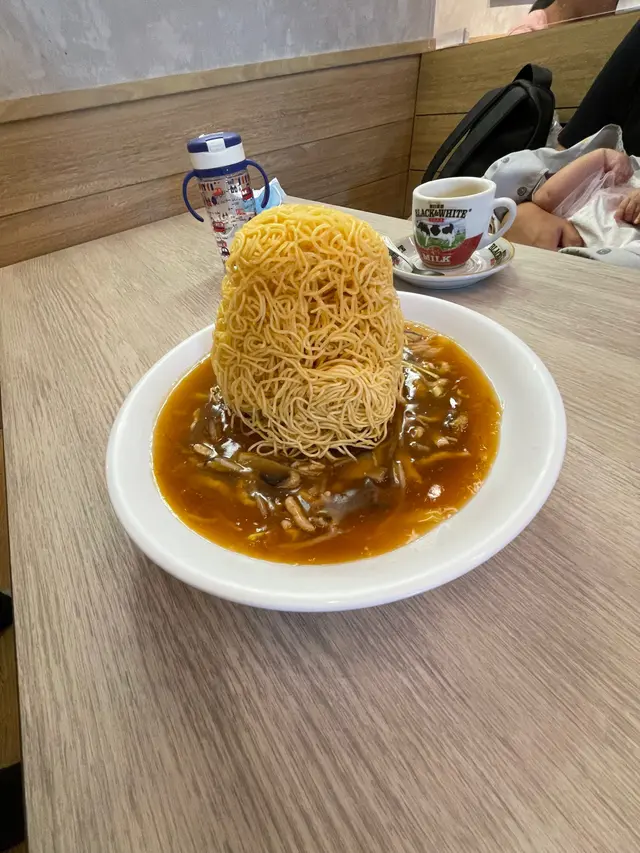 星期六下晝四點到達山頂凌霄閣 ,餐廳嘅位置係搭完纜車,一出嚟 行咗幾步,經過手信店舖,就即刻見到哩間餐廳,它位置係絕佳。 我哋畀佢啲食物相吸引咗,入咗去😅。我哋本來係為咗件西多士 入嚟,點知佢話冇曬麵包,賣曬,咁咪唯有叫其他啦😒, 其實好奇怪~佢定位係茶餐廳😮💨舖面啲photo主打都係西多士,奶醬多士咁,居然冇曬麵包🤔。 另外,因用qr code點餐, 局限咗飲品冇得嗌少甜少冰 ,(其實好多用qr code點餐嘅餐廳,個app入面都可以備註),我就問一問個服務員, 嗰位肥肥哋嘅服務員哥哥(唔係著卹衫),非常之helpful👍, 幫我哋人手落單,備註少甜少冰。 著住卹衫嗰兩位看似高級啲嘅服務員就好冷漠,西口西面咁,兩位只企喺門口附近,不停望住店出面,完全唔多理店舖入面嘅嘢。我哋嗌咗兩杯凍飲 (阿華田珍珠,另一杯係紅豆冰珍珠), 兩杯凍飲加起係接近100蚊,再加50蚊嘅洋蔥圈配花生醬奶油pancake ,食物味道就真係一般啦~係大x樂/大x活嘅級數, 價錢就山頂價錢,唯一值得讚嘅就係個肥哥哥侍應夠nice和主動💖,埋單係大約 $150。…查看更多