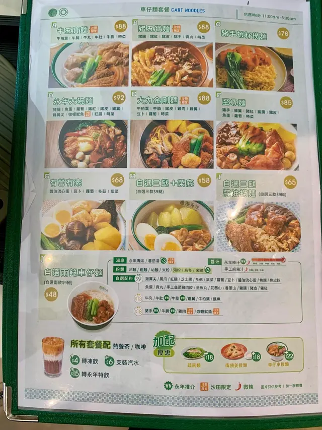 餐廳:香港永年車仔麵茶冰廳 (沙田)地址:沙田沙田正街18-19號新城市廣場一期1樓113號舖1962年開業嘅元朗老字號——永年士多,近年喺香港連開10幾間分店,咁多年嚟都喺主打傳統港式餐飲美食——茶餐廳同車仔麵🍜,加上價錢實惠又有會員優惠,深受唔少香港人同遊客喜愛🤩沙田分店開咗喺餐廳林立嘅新城市廣場一期1樓,座位對住商場出面嘅沙田大會堂平台,咁啱喺正商場嘅角落位置,雖然就比較難搵,但坐喺度食嘢可以享受到一刻嘅寧靜😌,而且座位夠闊落,坐喺度Hea吓都幾舒服✝️港式咖喱五寶麵套餐 $98 呢個沙田店限定嘅港式咖喱車仔麵,有5款經典必食配料:牛筋、牛肚、陳皮魚蛋、蘿蔔同咖喱魷魚🦑,咖喱唔會死辣,食到陣陣香料香味,而且份量都幾多,差唔多半碗都喺配料嚟👍,麵底就叫咗粗麵,另外跟餐再送多碟生菜🥬,浸埋落咖喱湯度食當加多個餸🤪✝️永年雜扒餐 $108以前細個成日會去港式扒房鋸扒,雖然質素未必有西式扒房咁高,但勝在價錢夠實惠,而且夠大份,加上用鐵板上「滋滋聲」嗰種視聽嗅覺享受😎,確實喺港式扒房先做到。呢個扒餐有牛扒同雞扒🥩,仲有火腿扒同香腸,配埋薯條同鐵板雜菜,啱晒一眾大胃王食肉獸,性價比真喺幾高,另外加$18叫咗個懷舊蝦多士,一客有三件,多士酥香鬆脆而中間夾雜住彈牙蝦肉,幾香口惹味😋跟餐加$15可以叫埋特飲,分別叫咗咖啡涼粉冰同樽仔奶茶,前者涼粉都幾多,後者紅茶味夠香醇,兩款都喺港式獨有嘅飲品,見到唔少外籍人士都叫嚟試啦🧋…查看更多
