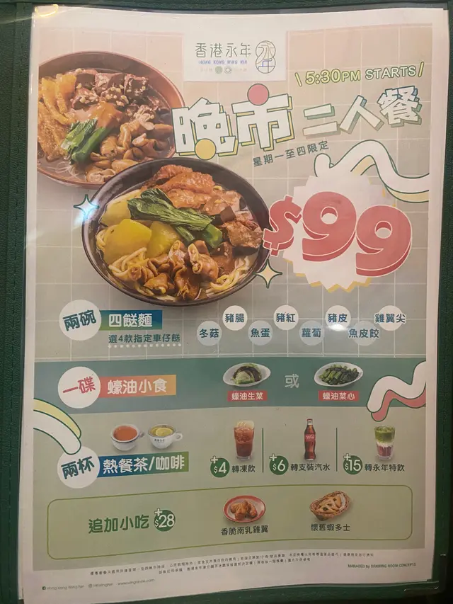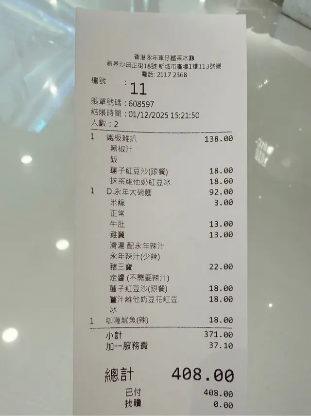 香港永年車仔麵茶冰廳 (沙田) 網址: https://s.openrice.com/QrbS0HzE4W0 地址: 香港沙田沙田正街18-19號新城市廣場一期1樓113號舖 電話: +852 21172368