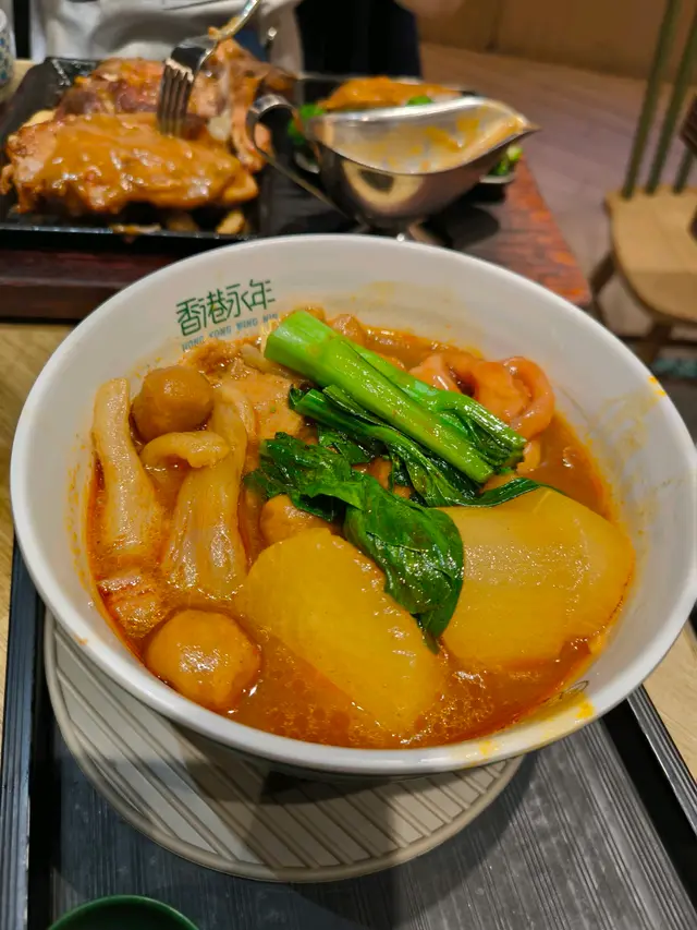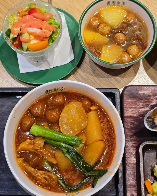 沙田新城市廣場可以品嚐懷舊港式味道,永年除咗最出名車仔麵,仲有地道嘅鐵板餐同小食特飲😋🔸永年大碗麵(HK$102)可以一次過食晒好多配料嘅大碗車仔麵,有豬腸、豬紅、豬皮、雞翼、雞翼尖、魷魚、紅腸、魚蛋、蘿蔔丶時菜,今次我加埋招牌辣醬,更加惹味😁🔸 鐵板香脆雞扒炒扁冬(HK$108)鐵板熱辣辣即時淋上洋蔥汁,雞扒幾大塊,烏冬都好多醬入味😍🔸懷舊蝦多士(HK$18)小食都好懷舊,鋪上蝦肉再去炸嘅脆卜卜蝦多士,唔係周圍都有得食😎另外當然唔少得紅豆冰,呢度有得配抹茶同奶茶添🤪…查看更多