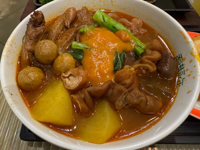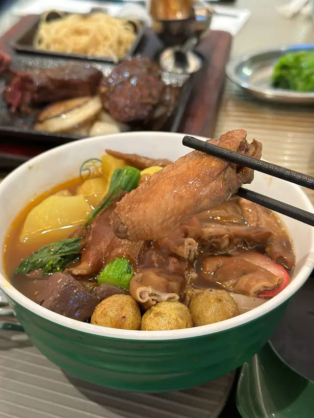 今日去咗一間非常不錯的既餐廳,係沙田既永年,呢度同其他分店吾同,有車仔麵之外仲有吾同既套餐! 🤤🤤🤤而且餐廳有好多打卡站☺️☺️牛三寶(牛柏葉、牛肚、牛筋)有牛柏葉、牛肚和牛筋各具特色,味道鮮美,搭配特製的辣醬汁,讓每一口都充滿了肉香,cp值十分高!牛油果大蝦沙律鐵板餐可選沙律or 湯,沙律的牛油果新鮮滑順,搭配大蝦的鮮甜,混合的沙律醬清新可口,讓整道菜味道清淡又健康,非常適合作為開胃菜!🥗美國安格斯封門柳鐵板餐安格斯牛肉的肉質鮮嫩,經過鐵板煎製後外焦內嫩,香氣四溢,跟左黑椒汁,非常好食,可選意粉or 飯,今次食意粉,有種黑椒牛柳炒意既風味🔥🔥大碗麵今次試左大碗麵,有曬佢地出名既野,同其他分店吾同,呢度有得食番茄湯!☺️湯底濃郁,搭配多種配料,讓人感受到滿滿的幸福感,其中最好食係豬腸,非常香!紅腸都非常吾錯!套餐可加錢叫特飲…查看更多