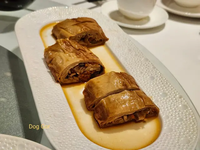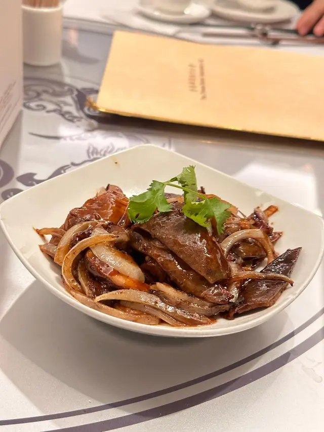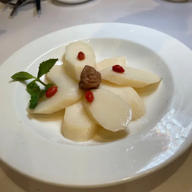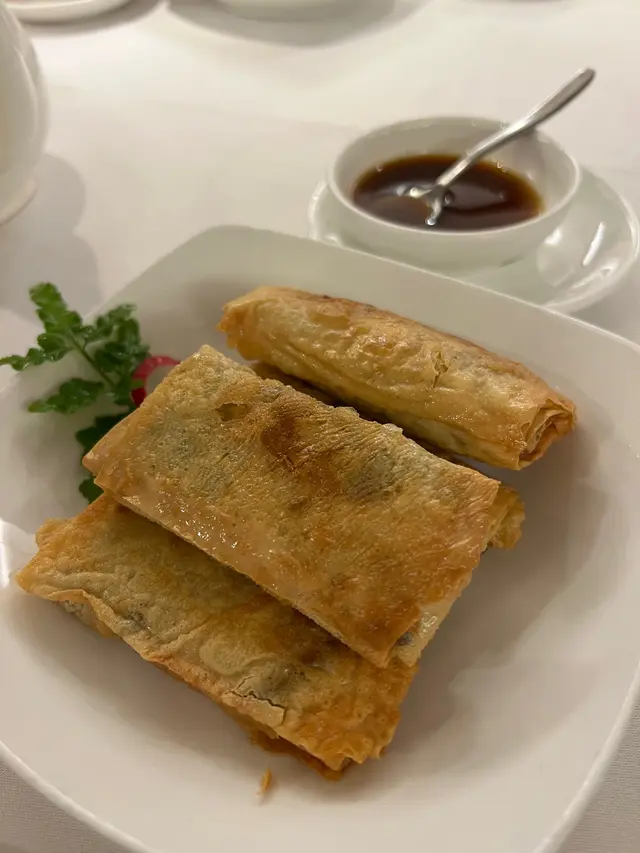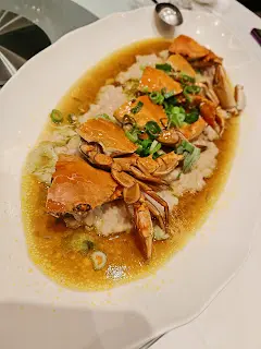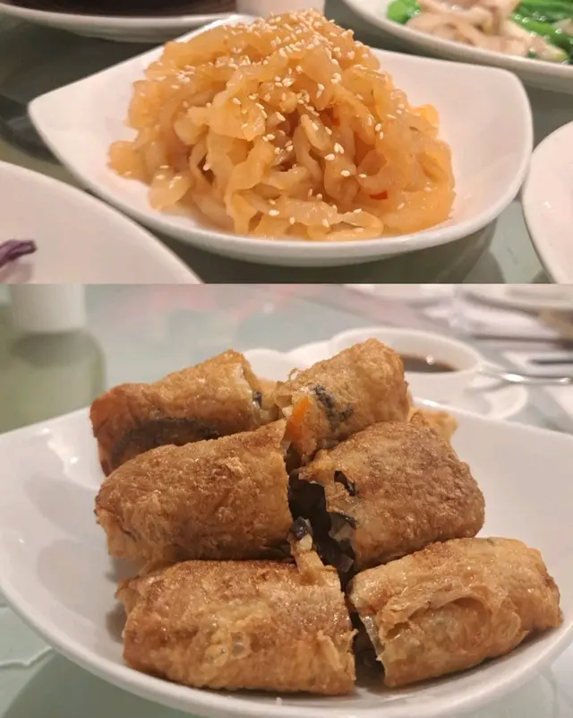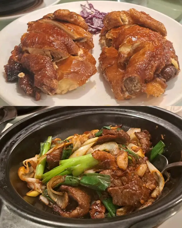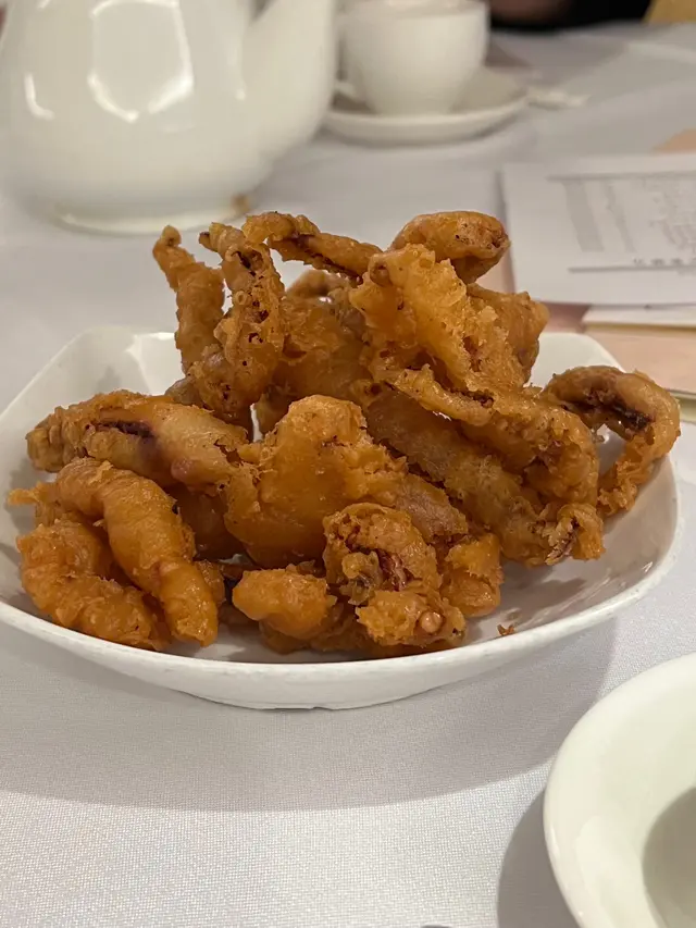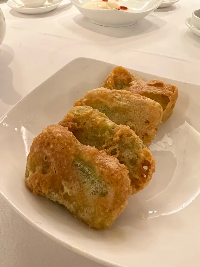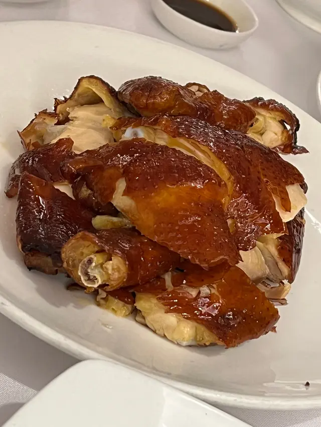 預先寫菜每位$68O元全包,中秋做節在此,整體水準唔錯,六個人都有私人房間。頭盤四小碟醉鮑魚黑醋脆鱔五香鴨舌椒鹽龍躉魚皮椒鹽龍躉魚皮最有驚喜,四十斤龍躉的厚皮,外脆內黏調軟滑,口感豐富,骨膠原滿嘴。奄仔蟹蒸肉餅奄仔蟹正值時令,金黃蟹膏脂香幼滑,肉餅吸盡精華,我們即點白飯,完美配搭。芥蘭炒本地肥牛肉食唔出是肥牛,但鬆軟入味,中規中矩。家鄉鹽水鵝做得唔錯,適當鹽香,切至細細件,清而味足,不過吃過肉質更滑的鹽水鴨,而且鵝太大隻,六個人來說就過多了!青提子咕嚕本地黑毛豬肉青提子暖暖地,多汁無酸味,竟然與咕嚕肉合拍;黑毛豬半肥瘦,肉質有彈性,幾好食。蒜茸炒西洋菜救鑊氣,炒得香,蒜茸粒份量多不霸氣。薑葱雞絲燜拉麵拉麵非常有韌力,喜出望外,是整個麵的靈魂,我們個個都讚,味道亦好,可惜,雞絲始終有點嚡。紅豆沙湯圓.特色甜點迷你月餅、椰汁糕與紅豆沙湯圓,如沙粒的紅豆沙,唔太甜,好好味。 #香港華商銀行公會 #中環 #中環美食 #粵菜 #中菜…查看更多