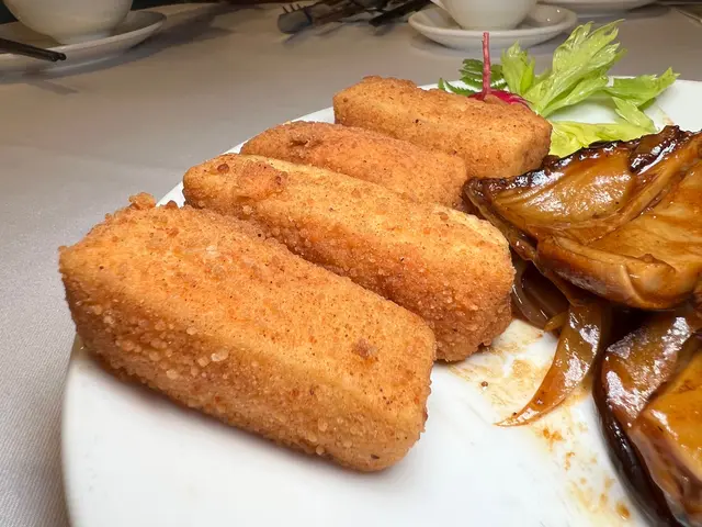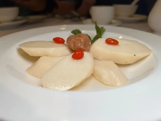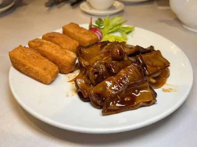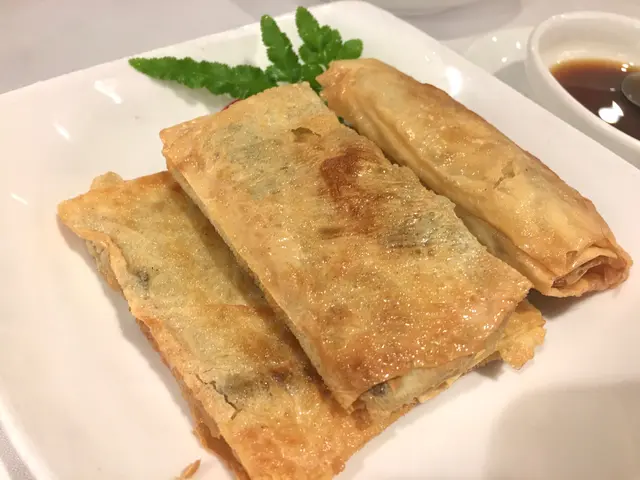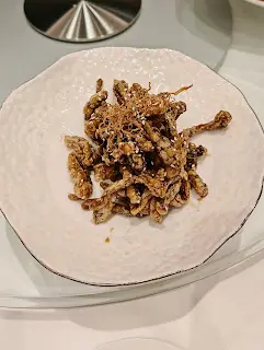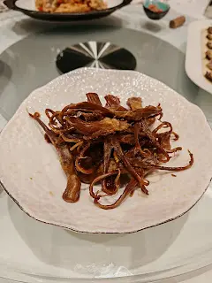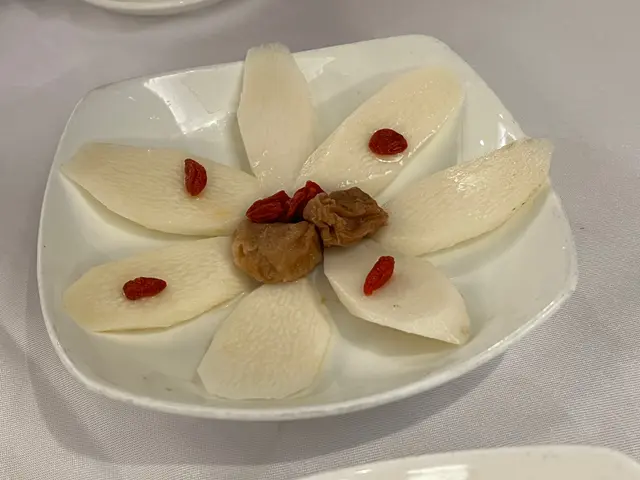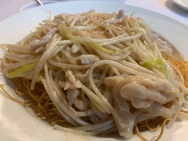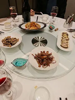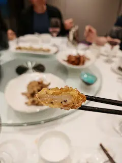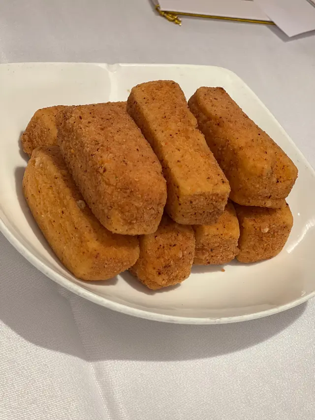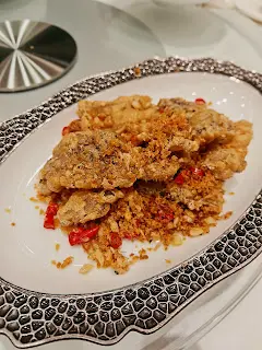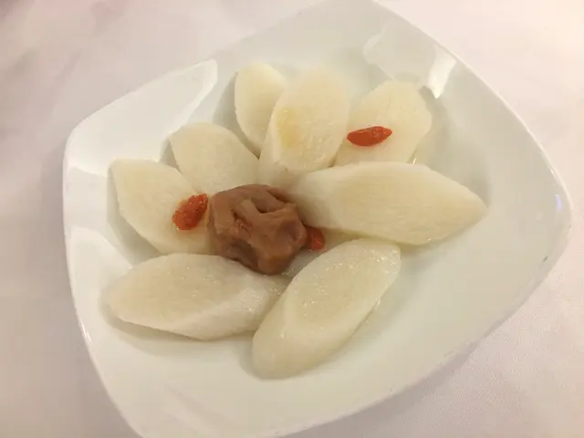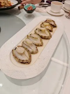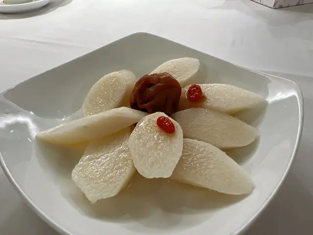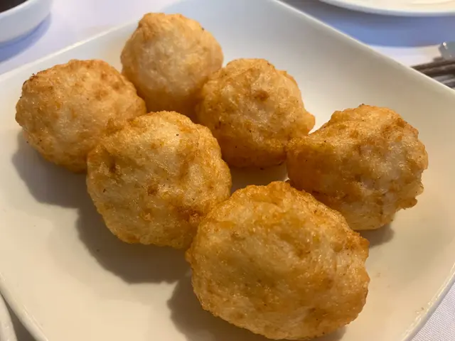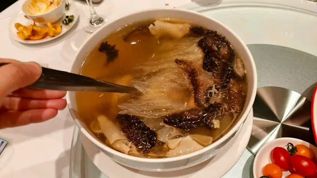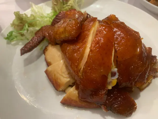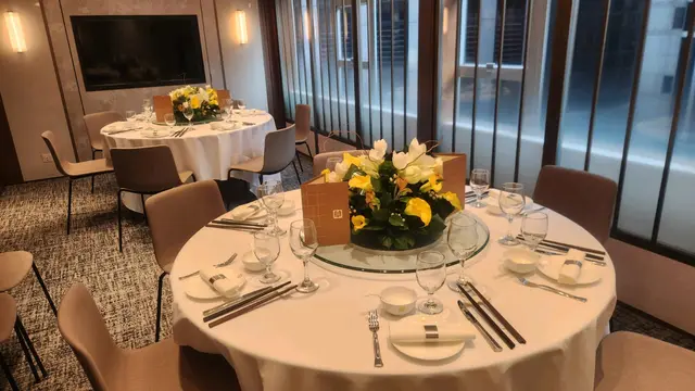 預先寫菜每位$68O元全包,中秋做節在此,整體水準唔錯,六個人都有私人房間。頭盤四小碟醉鮑魚黑醋脆鱔五香鴨舌椒鹽龍躉魚皮椒鹽龍躉魚皮最有驚喜,四十斤龍躉的厚皮,外脆內黏調軟滑,口感豐富,骨膠原滿嘴。奄仔蟹蒸肉餅奄仔蟹正值時令,金黃蟹膏脂香幼滑,肉餅吸盡精華,我們即點白飯,完美配搭。芥蘭炒本地肥牛肉食唔出是肥牛,但鬆軟入味,中規中矩。家鄉鹽水鵝做得唔錯,適當鹽香,切至細細件,清而味足,不過吃過肉質更滑的鹽水鴨,而且鵝太大隻,六個人來說就過多了!青提子咕嚕本地黑毛豬肉青提子暖暖地,多汁無酸味,竟然與咕嚕肉合拍;黑毛豬半肥瘦,肉質有彈性,幾好食。蒜茸炒西洋菜救鑊氣,炒得香,蒜茸粒份量多不霸氣。薑葱雞絲燜拉麵拉麵非常有韌力,喜出望外,是整個麵的靈魂,我們個個都讚,味道亦好,可惜,雞絲始終有點嚡。紅豆沙湯圓.特色甜點迷你月餅、椰汁糕與紅豆沙湯圓,如沙粒的紅豆沙,唔太甜,好好味。 #香港華商銀行公會 #中環 #中環美食 #粵菜 #中菜…查看更多