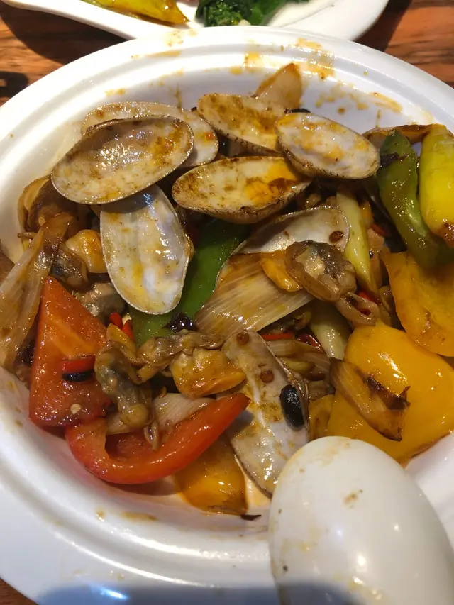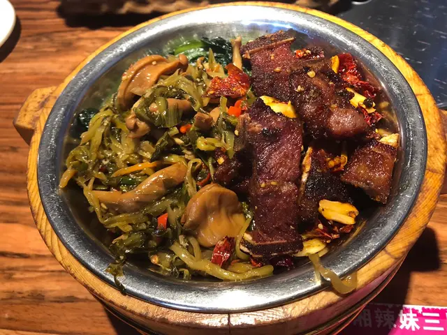 除咗辣椒仲有落咗蒜心粒同花生去炒,除咗令賣相更靚,蒜心粒爽脆食落辣辣地都好好味。午市嘅木桶飯每日有幾款揀,我地點咗一個小炒牛肉木桶飯。估計係即叫即蒸所以都等得比較耐。牛肉有牛味無鬆肉粉味,味道似屋企食到嘅味道,牛肉無走過油所以就唔算滑,配埋尖椒同唐芹幾好味。份量方面都算多,難怪咁多人嚟買外賣。總括嚟講食物質素唔錯,好似喺深圳食到嘅味道咁。但服務方面有待改善,至少樓面要長期有至少一個人比較好,一係唔好收加一服務費。…查看更多
