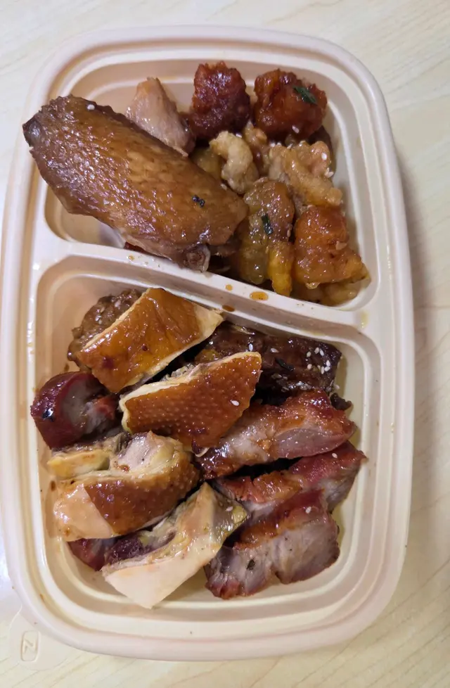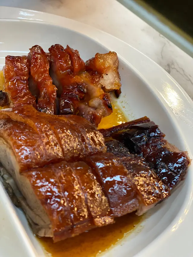 呢間既然叫得自己做燒鵝店,想必燒鵝一定係最掂,點知夜晚賣晒,燒味得返叉燒同雞:)於是就要蜜汁叉燒同豉油雞,叉燒一啲都唔似貨尾,肥瘦剛好,好有肉汁