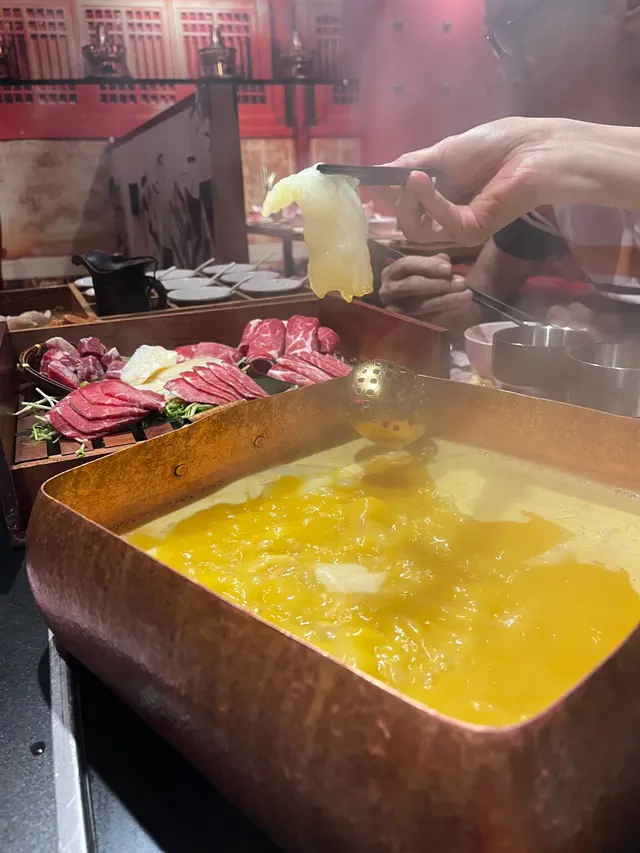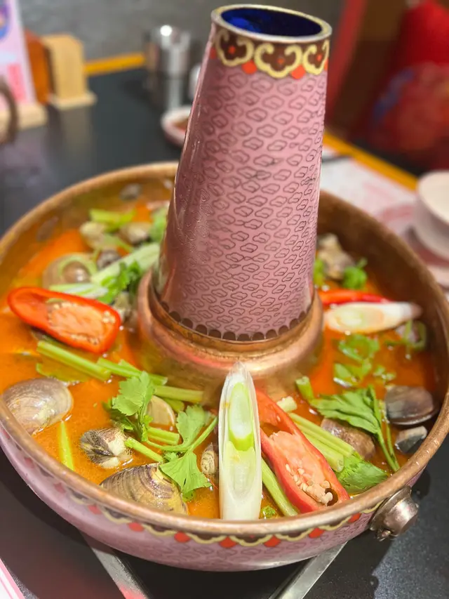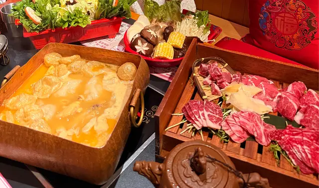 前排同屋企人去咗尖沙咀呢間氛圍滿滿嘅火鍋店打邊爐,最正就係門口有張大龍椅,入到黎更可以揀套舊式宮廷衫變妝~ 食物方面,火鍋用料新鮮,湯底自家熬製,份量大,絕對係尖沙咀抵食火鍋之選❤️雍穆公主·花膠雞湯鍋 (半隻)專登點咗呢個湯底,用咗大量花膠同半隻鮮雞熬製,湯色金黃,飲落勁多花膠嘅黏口感覺,再加埋半隻鮮雞,感覺好滋補,份量夠足,淨係飲湯+食雞已經非常滿足🔥艾莎公主牛肉寶盒有成7款唔同部位牛肉,樣樣都可以食到。份量唔少,夠兩個人慢慢食 。最正上枱時仲有乾冰煙霞效果,打卡必備 🥢小食/蔬菜 - 香香宮煮餃子拼盤﹕ 包括蝦餃、蟹王餃、韭菜餃同黑松露餃,每款餃子皮薄薄地,餡料足實,蝦餃蝦肉彈牙鮮甜,蟹王餃蟹肉滑溜有蟹香,韭菜餃蔬菜脆脆地帶陣清香,黑松露餃就加咗松露味,入口有淡淡菌香,食落層次分明- 即炸黃金炒響鈴﹕必點必食之一! 響鈴炸得脆脆地,外層加左超多蛋黃醬,入口香脆帶咸香香,就咁食都非常邪惡- 菠菜苗﹕ 新鮮嫩綠,涮落湯底入口爽脆- 白鱔片﹕ 切得薄薄地,入口鮮嫩無骨,味道自然唔腥🥤飲品/甜品點咗自家製足料竹蔗茅根,茅根竹蔗甘香突出。甜品試咗鮮芋丸百合紅豆沙,材料超多,成碗都係煮到軟林林嘅豆,味道唔太甜,好正…查看更多