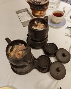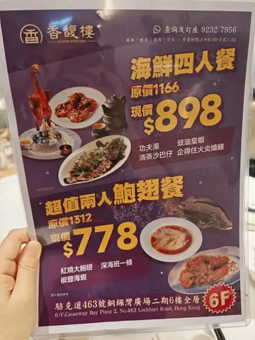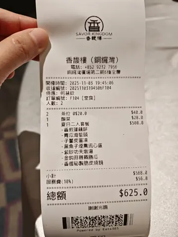 銅鑼灣 香馥樓 新派中菜廳, 位於銅鑼灣廣場二期, 主打高級粵菜, 朋友或家庭聚餐都適合.酒樓接待招呼好, 經理會上前介紹時令美食, 特別推介 [秋夏廚師推薦菜多款] 點餐無難度. 其中 大家選了4款.經理又提議我們 試 試 [夏日二人套餐] 推廣價 $500/2位, 套餐已包含我們初選的4項, 重有燒鵝和功夫燉湯, 正啊 !酒樓所用茶具及餐具, 都好精美. 水滾茶靚, 對喜歡中國茶的我們, 十分欣賞. 餐前小食四款: 係自製手工出品 ~ 酸薑皮蛋凍, 黑魚子煙熏流心蛋, 青瓜海蜇頭, 香煎蓮藕餅, 酸薑皮蛋凍, 新派制作把酸薑皮蛋合併吃得精采. 黑魚子煙熏流心蛋, 上海菜風格, 加上黑魚子煙熏流心蛋 更好味. 青瓜海蜇頭, 清涼可口. 香煎蓮藕餅, 香氣迫人, 四款小食, 各有特式.接著 每人一個 功夫燉湯, 用紫砂功夫壺 連火具 及 小碗子. 椰子雞肉, 瘦肉, 螺頭燉湯 , 夠熱又足料. 燉湯熱騰騰, 真材實料, 品茶般把湯倒進小杯子, 喝得有風味. 可以慢細嚐. 金勾蒜蓉蒸勝瓜, 簡單時令菜, 選用了勝瓜, 不油膩, 健康之選.每片勝瓜配上蝦干, 蒸得蝦香氣濃, 還有蒜蓉圍著 . 令勝瓜吃得可口.香馥秘制脆皮燒鵝, 份量足, 脆皮燒鵝香噴噴.熱辣辣, 鵝肉少脂肪, 肉厚而不肥, 配有秘制燒鵝酸梅醬, 好滋味. 鵝皮在口中爆汁, 滲出陣陣炭燒香. 食隻鵝脾更回味.香馥樓, 食材和烹調質素優越, 貨真價實, 師傅有廚藝, 價錢合理, 酒家環境地點非常好, 係銅鑼灣 粵菜之家.…查看更多