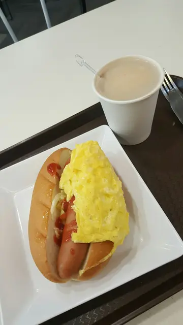 晨早趕時間,衝左入去搵速食,之前聽聞好味又抵食,點知中伏,這個所謂的滑蛋熱狗餐,其實都唔算叫餐,熱飲另加左$8, 揀左個滑蛋熱狗+咖啡,攞餐時見到個蛋已覺唔對路,完全跟餐牌唔一樣,蛋係煎乾求其"pet"上面,咖啡淺色至好立克一樣,無咖啡味,好淡,勁難飲