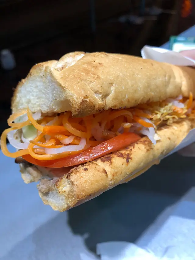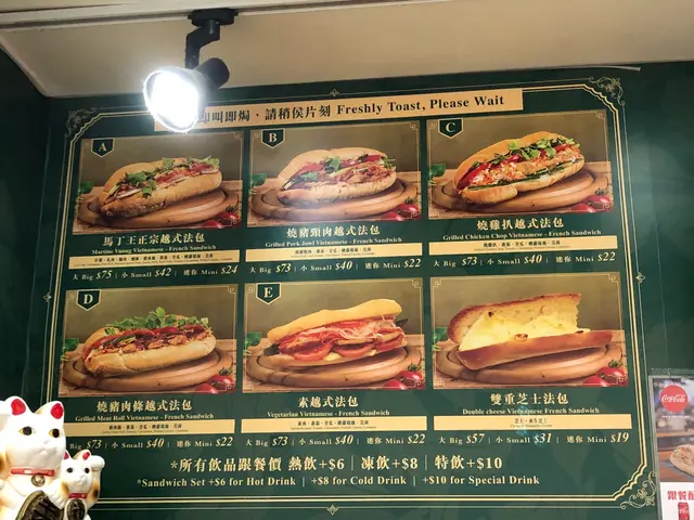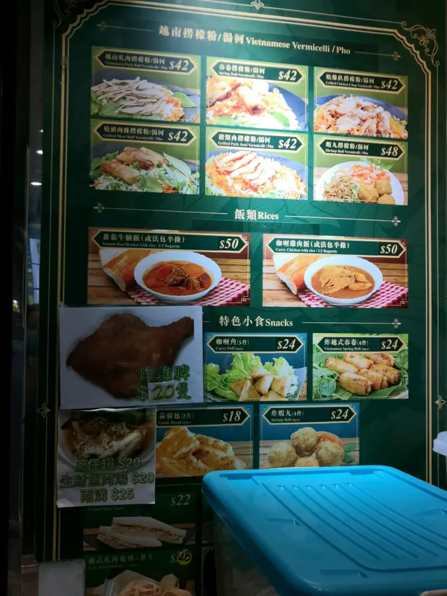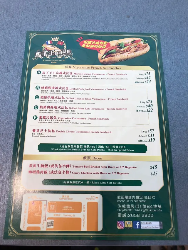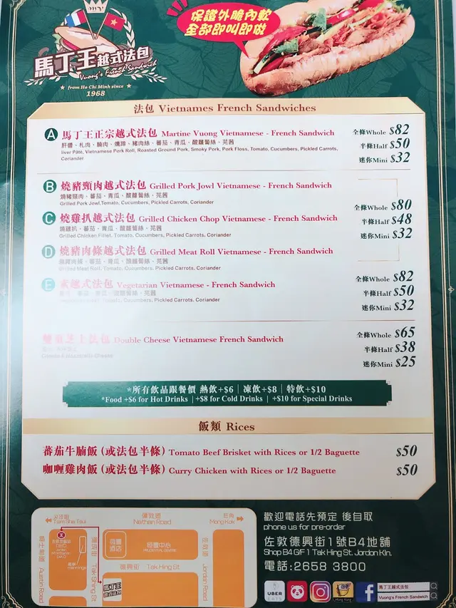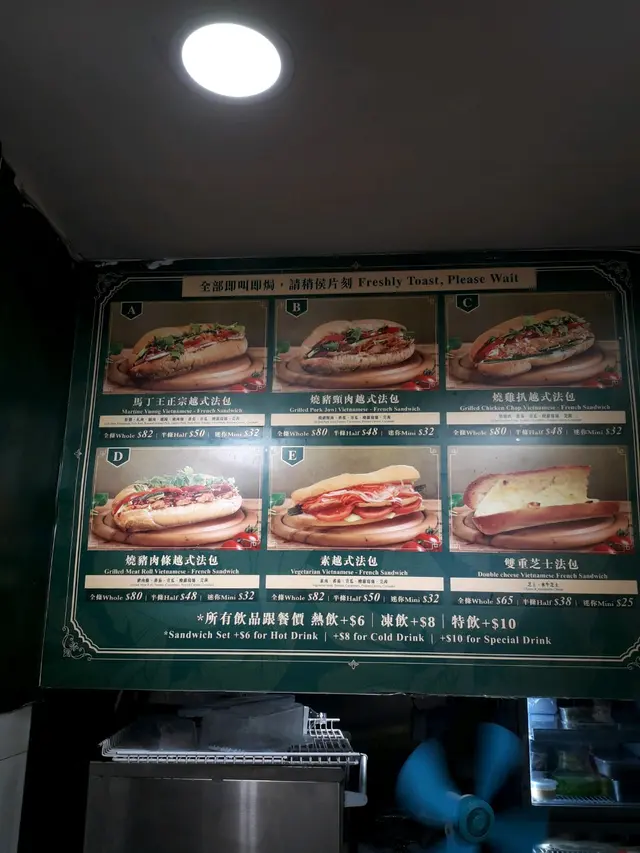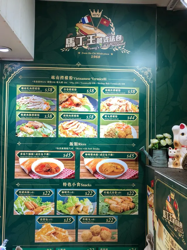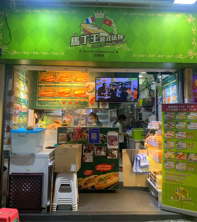 佐敦德兴街只是一条后街,但吃的东西倒不少。马丁王以越式食品为主,店内有不少艺人光顾的照片。小小的店专卖越南美食为主,价钱和卖相都贴在墙上,种类不算少。这里最出名的是越式法包,只有六款选择,本来想吃猪颈肉法包,可惜今天没有供应。问了一下,最后要了半个烧猪肉包和一隻炸鸡髀。看着都是即叫即做,等了10分钟终于拿到了。法包是焗过,所以外皮很脆。里面的肉口感似免治猪肉,放了适量的调料,不会淡而无味。另外还有芫茜、青瓜、蕃茄和红萝蔔丝做配菜,中和了肉味,吃了也不会太腻。看着店员把生鸡脾放进锅内生炸,皮脆肉嫩,肉汁还是保留着,真的好味。这店的水准真是不错,即叫即做可以保持证鲜味,吃完还会回味着。…查看更多