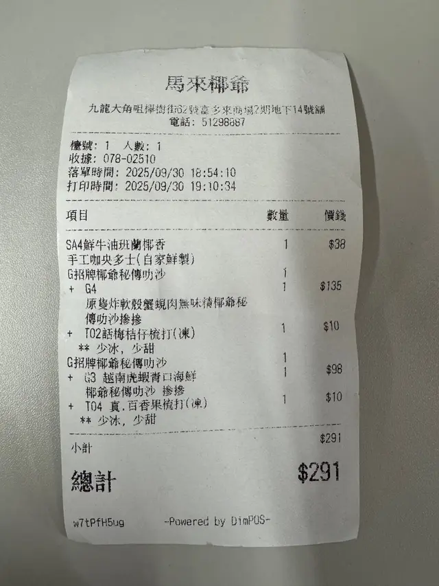 馬來椰爺 (大角咀) 網址: https://s.openrice.com/QrbS0z3u5W0 地址: 香港大角咀櫸樹街62號富多來商場第二期地下14號舖 電話: +852 51298887