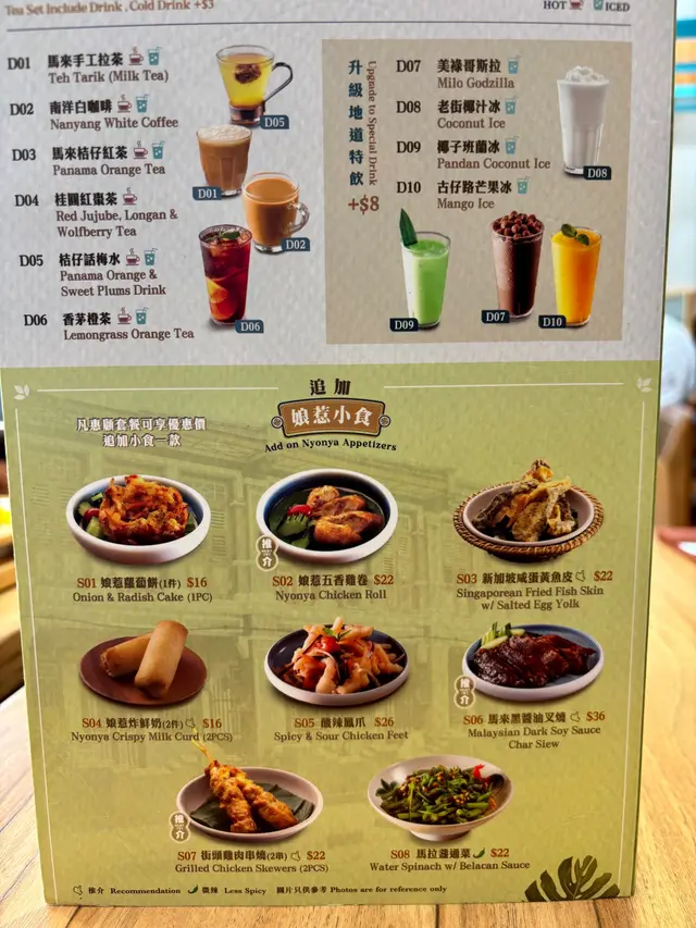 北角超抵食星馬菜!$200有找二人餐,海南雞飯+咸蛋魚皮正到爆!人均$70-90(晚市套餐平到笑,仲要夠飽!) 亂入呢間星馬菜,本來冇期望,點知一試馬六無骨海南雞飯,哇~雞肉滑到識發光,油飯好香,仲要唔會太油膩,啖啖肉冇骨,懶人恩物!馬拉盞通菜,炒得蝦醬味濃但唔會咸到飲水,送飯一流! 最驚喜係咸蛋黃炸魚皮,脆到「索索聲」,咸蛋黃多到黐住晒個口,邪惡但停唔到口!食完飲返杯桂圓紅棗茶甜度剛好,暖粒粒好舒服~最後仲有叫左美綠哥斯拉(即係美綠恐龍?🤣)超濃朱古力味,飲完成個人開心晒! 環境方面:小店格局,坐得闊落又乾淨服務方面:員工個個都好快手,落單5分鐘左右就上菜!見我影相仲主動話:「後生女,趁熱食啊!」人情味加分~ 🌟 必點推薦咸蛋黃炸魚皮**(脆到癡線,必叫小食!) 美綠哥斯拉**(朱古力控會瘋狂~) 200有找食到捧住個肚走,仲要樣樣高質,北角街坊有福了!如果嫌茶記悶,呢間絕對係平民星馬菜首選,性價比爆燈,回頭率100%一個人去食的話,建議叫1人套餐,$90有交易,仲平過茶餐廳!😎…查看更多