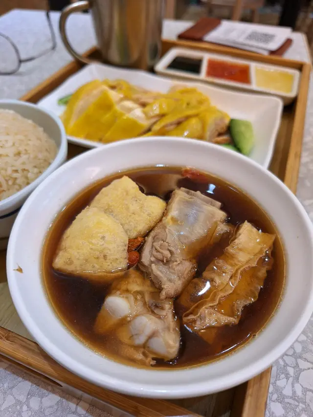 今日去西灣河食午餐,睇過晒隔離左右有台灣菜、越南菜及馬拉菜,最後選左馬六,諗住飲下肉骨茶,一飲秒後悔,心諗點解吾選隔離兩間,湯只有藥材味而且較淡,但沒有肉味,再試下肉,肉是有肉味,咁樣好可能,有客人叫,才將兩者拼入碗,所以才有這種格格不入嘅味道呈現,湯裡面有4舊小排骨,2個豆卜一開二,1個冬菇一開二,1條枝竹,一大碗湯,比例吾啱,有D被灌水嘅感覺,看似好大碗,好彩碗白飯好食,一句講晒無質感吾滿足。