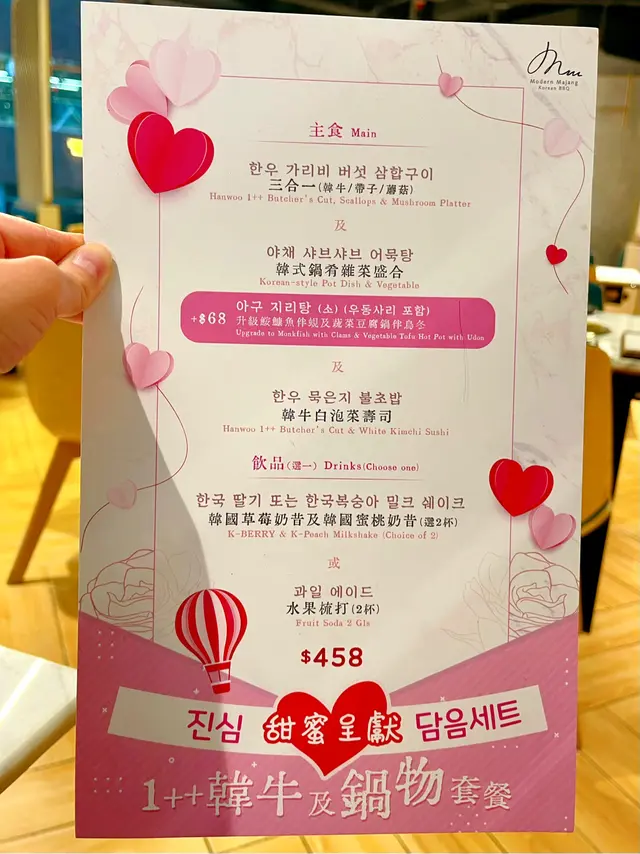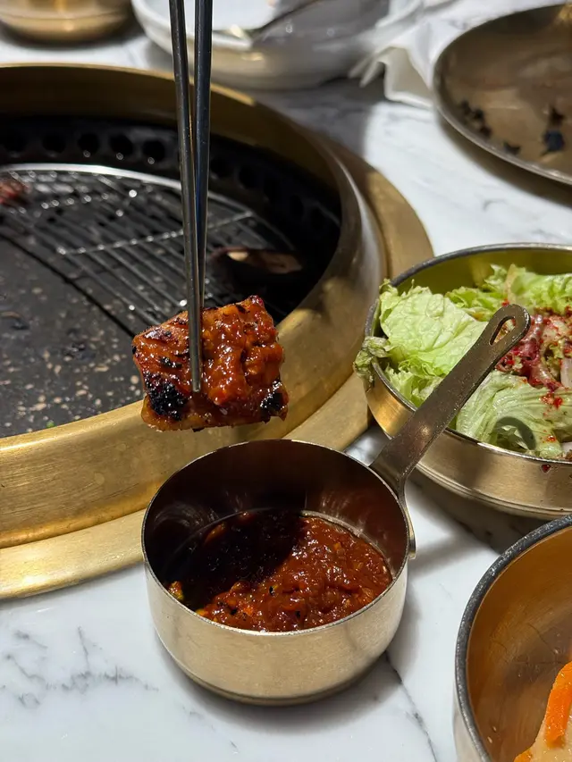 這間韓國菜餐廳有多間分店,選用韓國優質食材及傳統的韓國料理烹飪技術,製作美味的韓國菜。而且餐點選擇豐富,除了燒肉外,更有不少特色韓食選擇👍🏻難怪平日晚飯時段都近乎滿座。入座後,餐廳便奉上多款韓式前菜,好多款都不錯。.🐮特級牛肉搭配 $548▪️二東刀紋牛排骨▪️韓國屠夫特選牛排▪️極級霜降肉▪️牛膈肌二東刀紋牛排骨🥩用上韓式醃醬調味,味道微甜,感覺清新。韓國屠夫特選牛排🥩牛味濃郁,肉質嫩滑。極級霜降肉🥩油花分佈平均,肉質細膩,是本人最愛的一款。牛膈肌🥩肉味最濃,口感軟腍。另外,還配有惹味海鮮豆瓣醬,配搭起來味道更濃郁。.🐷特級豬肉搭配 $458▪️韓國豬肩肉▪️馬場洞乾式熟成五花腩▪️雜錦蔬菜韓國豬肩肉🐖肥瘦適中,肉質鮮嫩。馬場洞乾式熟成五花腩🐖肥瘦相間,富肉汁油脂香,燒起外脆内嫩。另外,還配有雜錦蔬菜可以中和油膩感,同樣有惹味海鮮豆瓣醬可配搭豬肉一齊食。.🩷戀上雪花冰 $40/杯最欣新推出的透心涼甜品,雪花冰口感輕盈,入口即化,配上🍓香甜士多啤梨,味道清新開胃。.🍹水果梳打 $48/杯果味梳打有多款口味,我們選了荔枝、檸檬、熱情果、西柚,幾款果香濃郁,消暑解渴。