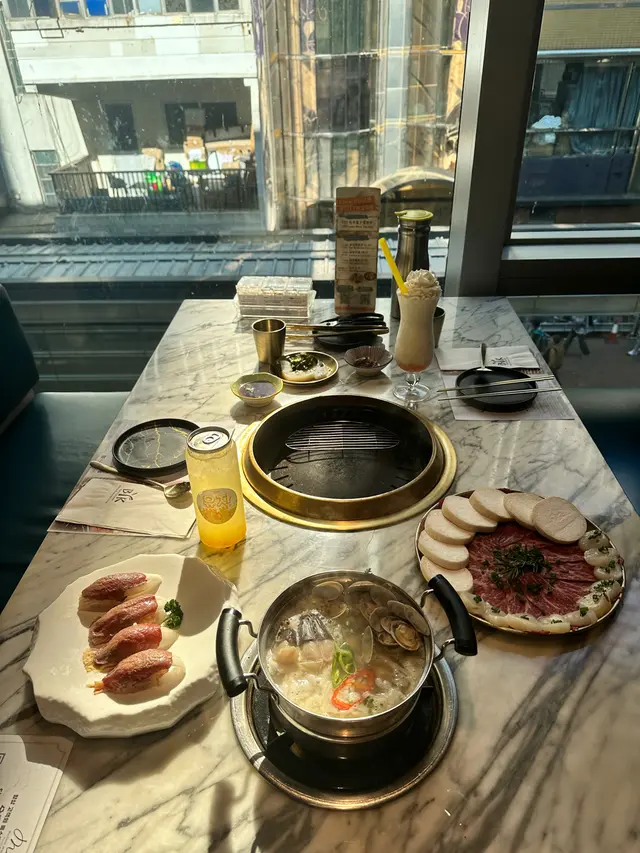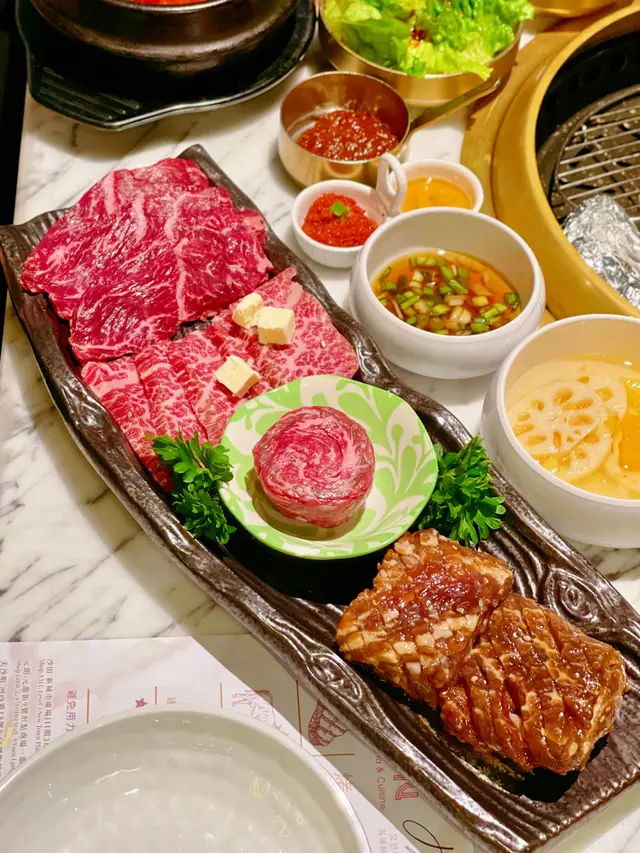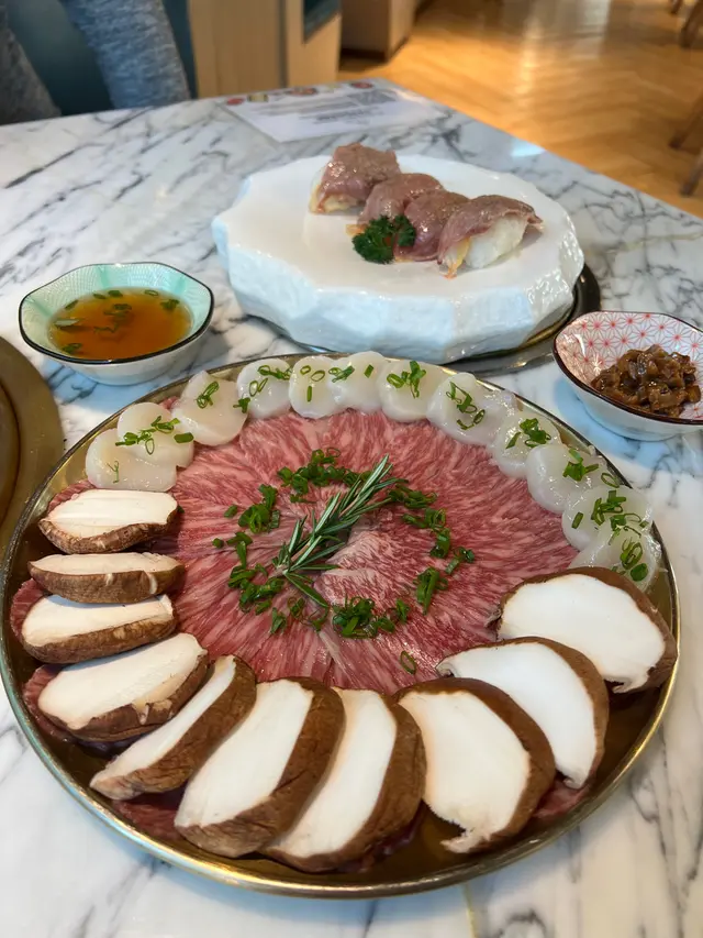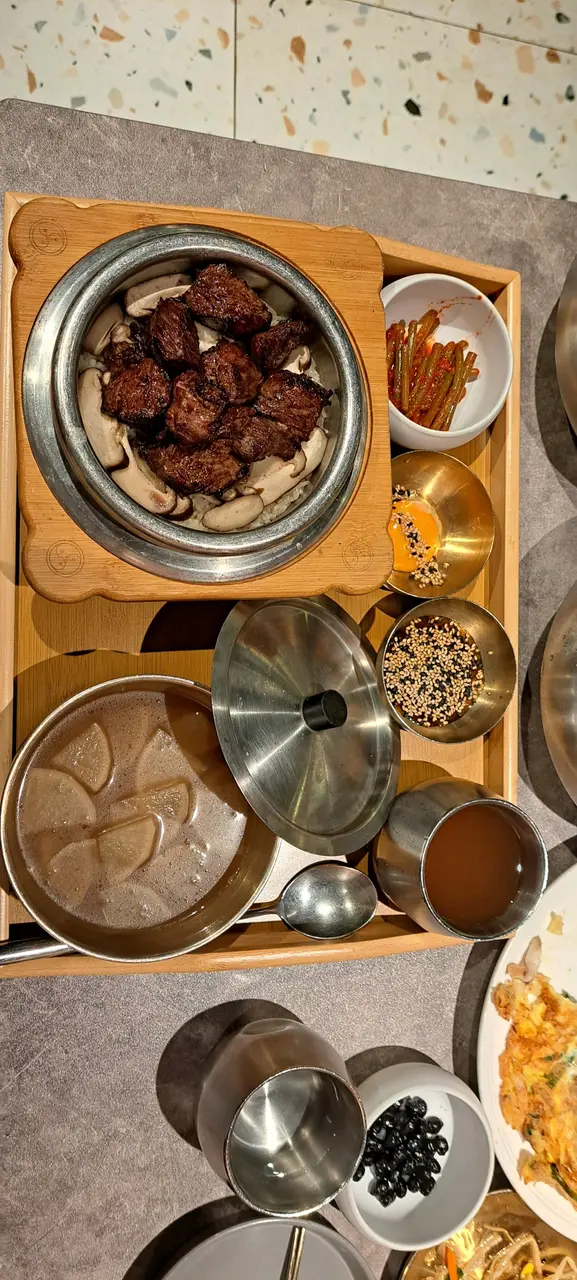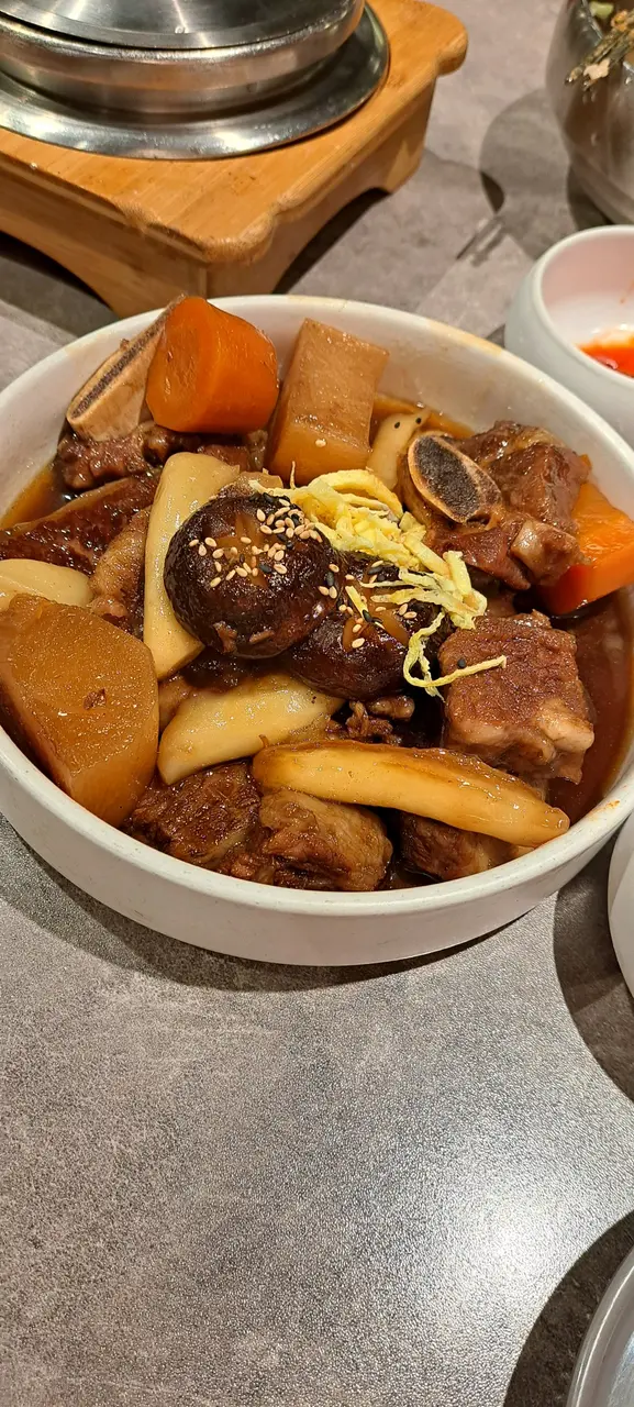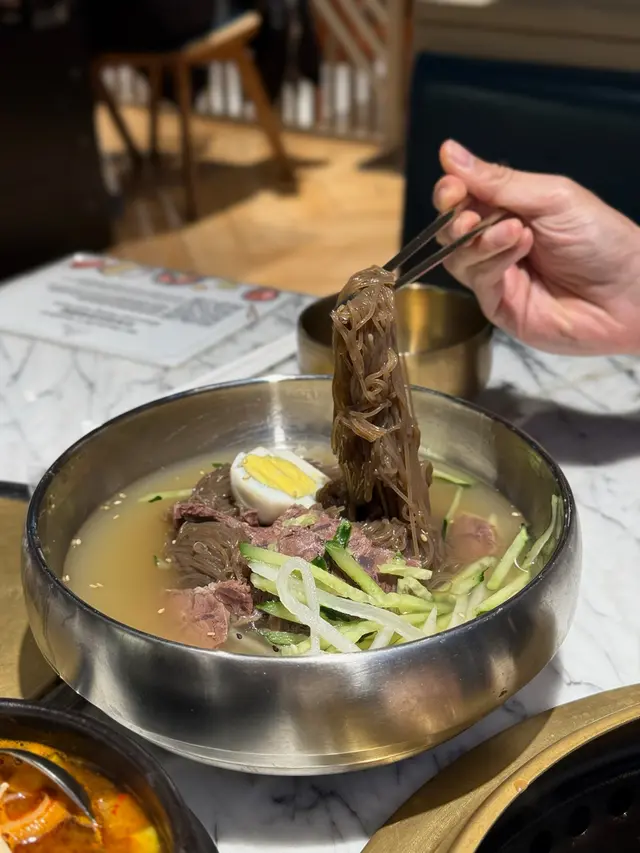 3人生日聚會1。燉牛排骨 🐄味道:極鹹。冬菇,紅白蘿蔔以及牛排骨鹹的程度如直接飲加左糖豉油質感:牛排骨非常嫩。淋2。極及霜降牛肉斧飯 🐮🍚(醬油另上,可自由決定倒入的份量)味道:牛肉醃製不太鹹但亦沒有什麼味道。配菜新鮮質感:牛肉有點乾,韌。此飯是在屬於粥品類別,飯質較淋3。海鮮蔥煎餅🍤味道正常,油份恰當,惟海鮮偏少,粉有點多4。水伴冷麵🍜清新,麵質有彈性,湯偏甜以上4種以水冷麵為最正常。前菜偏鹹。份量大。服務、環境、衛生也不錯,試一次當體驗😆…查看更多