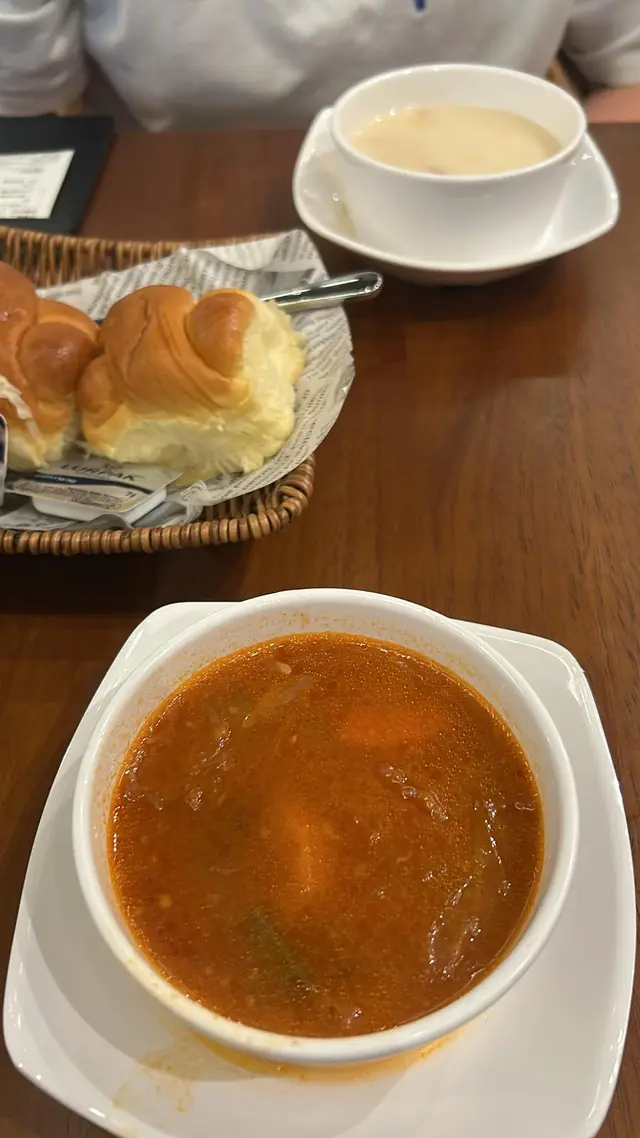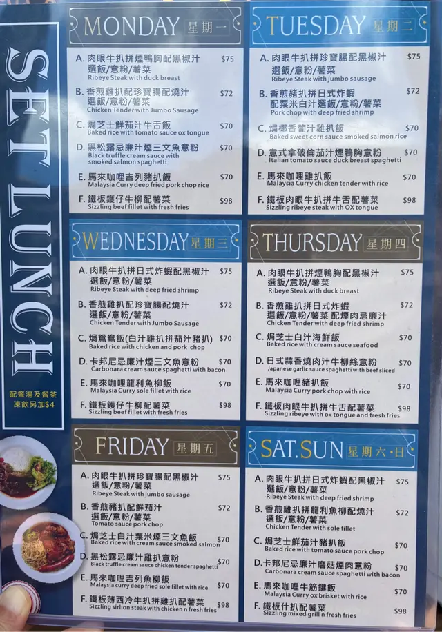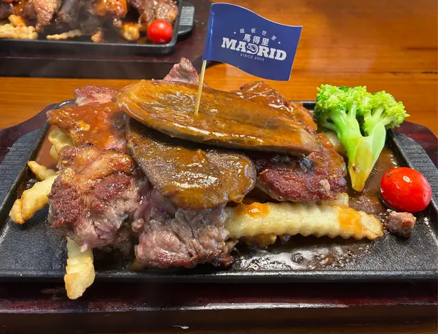 今日大雨 就喺附近食飯,咁啱經過見到間食鐵板肉,見有好多人嚟食,而且又坐滿咁就去試。叫咗鐵板牛柳,法式焗田螺,配羅宋湯同麵包。麵包係熱嘅,仲有牛油,麵包係好食。湯就好鹹,而且完全冇羅宋湯嘅味道。法式焗田螺,我以為會係有啲法式螺連埋嗰啲薯蓉,點知剩係得嗰啲肉,而且賣相一般。螺肉冇味道唔好食。牛柳叫咗五成,肉質嫩滑應該係用咗鬆肉粉,食落口就唔會覺得難咬,但係冇牛肉味。嗰度樓底唔算矮,但係都好嘈。價錢$208係合理嘅。…查看更多