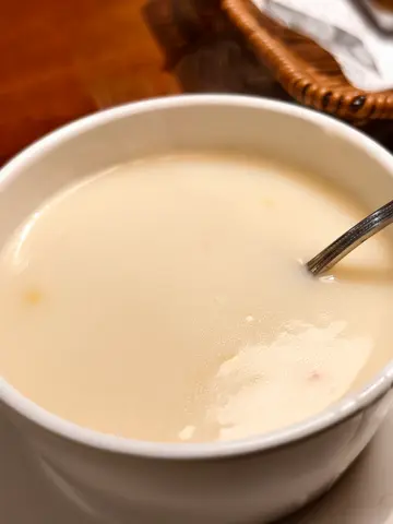 健身後需補充極大量的蛋白質,看見此餐廳提供港式鐵板餐,便試試看。打開餐單,選了戰斧豬排餐,具大的份量霸佔了整塊鐵板,厚切足料,高溫鐵板淋上黑椒汁,頓時煙霧沸騰,香氣四溢。豬排表面微焦,切開後粉嫩誘人,生熟程度剛好。入口肉質鬆化,脂香豐腴,而家肉味濃郁,主菜水準不錯。配料提供薯菜伴碟,不過不失,忌廉湯無甚驚喜,配料亦欠奉,牛油餐包尚算鬆軟。港式奶茶亦不俗,入口絲滑。最驚喜的是最後提供的啫喱,讓人感受專屬香港的飲食情懷。