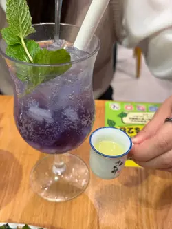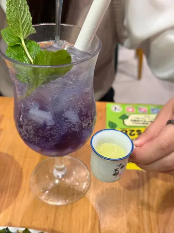 藍洋柚子梳打 HKD28,以蝶豆花汁調成紫藍色柚子梳打,賣相吸引,柚子梳打十清香。手打檸檬茶 HKD28,以優惠價享用,沒想過如此大杯,檸檬茶有著清香香水檸檬味,甜度適中,好飲。
