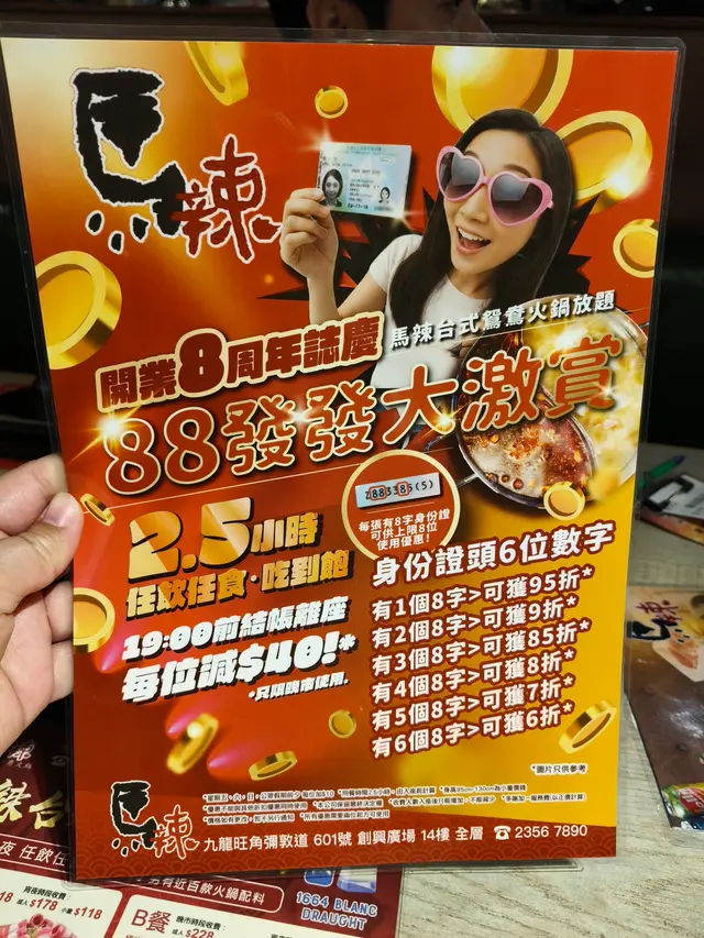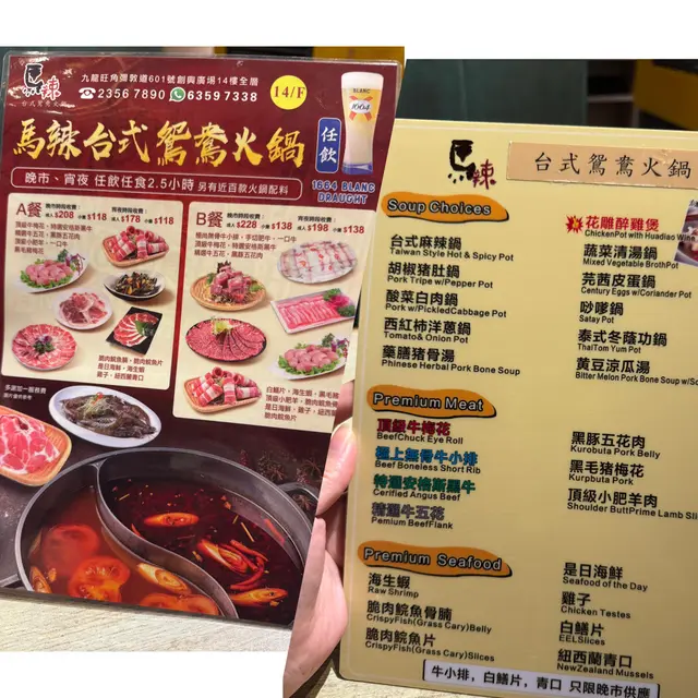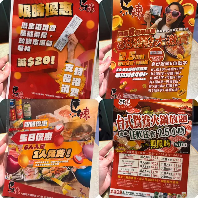 最近同媽咪去咗旺角創興廣場14樓嘅「馬辣台式鴛鴦火鍋」,呢間人氣台式火鍋店原來已經開咗8年,最近搞咗一連串優惠回饋大家,唔止學生同壽星有著數,基本上你有留港消費過都可以攞到優惠,支持本土消費,著數一羅羅,真係抵讚!一入去就見到佢哋有11款特色湯底揀,真係眼都花埋。天氣凍凍地,一於食豪啲,我哋嗌左胡椒豬肚同埋每位+$30升級花雕醉雞鍋,其實都幾抵,佢跟半隻雞,份量唔細,雞肉嫩滑入味,酒香撲鼻,啱晒冬天補身,媽咪食到笑晒口。套餐方面有A、B兩款,我哋揀咗貴$20嘅B餐,升級咗啲肉類,食到極尚無骨牛小排、手切肥牛、一口牛,啲肉油花靚到不得了,落鑊一灼就入口即溶,肉味濃郁,真係值回票價。海鮮方面仲有白鱔片、脆鯇片,啖啖鮮味,啱晒海鮮控。另外我哋加$20一款試埋牛舌同牛胸爽,牛舌切得薄薄地,爽口彈牙,牛胸爽好脆卜卜,香氣四溢,正!配料方面都係一絕,超過百款任你夾,疏菜、丸類、餃子、台灣麵、滷肉飯、港式甜品、鮮果樣樣齊,誠意十足。飲品方面選擇多,養生嘅可以飲花茶、咖啡,想開心啲就有罐裝啤酒任飲,仲可以加$68要生啤一塔,啱哂一大班朋友一齊share!整體嚟講,馬辣真係CP值爆燈,食材新鮮、選擇多、服務又唔錯,無論你係想補身、開心聚餐定係搵個地方慢慢嘆宵夜都啱晒。趁8周年有咁多升級優惠,唔試真係走寶!📍馬辣台式鴛鴦火鍋 (旺角)旺角彌敦道601號創興廣場14樓…查看更多